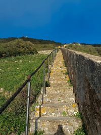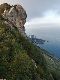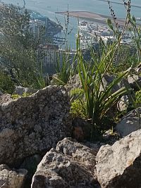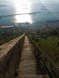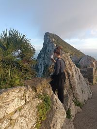 Z Torremolinos jsme před polednem vyrazily autobusem směr Gibraltar- respektive La Línea de la Concepción . Trochu nás zmátla navigace, tak jsme autobus stihly jen díky tomu, že měl zpoždění- zastávka je špatně označena- dejte si větší předstih. Zpáteční jízdenky zakoupeny předem on line za 68Euro pro 2 osoby. V La Línea de la Concepción jsme si zašly na oběd- tentokrát ne do restaurace, ale hladově jsme využily Burger King hned u autobusové zastávky. Po ubytování jsme se pěšky vydaly k hranicím, prošly pasovou kontrolou (stačí OP) a prošly přes přistávací dráhu letiště do centra Gibraltaru. Po krátké procházce centrem jsem zamířily do kopce k hradu Moorish castle, kde se kupují vstupenky do přírodní rezervace. Jelikož bylo po páté hodině, u vstupu již nikdo nebyl. Turistů jsme potkaly jen pár, také pár taxíků, co se vracely zpátky.Pokračovaly jsme do kopce k vyhlídce, potom slepou ulicí k bunkru a tunelu... Nakonec jsme došly vcelku nenáročnou s cestou k historickým hradbám Charles V Wall, podél kterých vedly schody přímo k nejvyšší krmné stanici opic. Opice posedávaly na hradbách na posledním dlouhém úseku shodů. Opatrně (dcera má z opic velký respekt) jsme je obcházely, schody byly poměrně úzké (max. 1m). Opičky se nám v podvečer zdály vyklidněné, vše působilo zpomaleně. Nahoře jsme si užily nádherných výhledů, pokecaly s opicemi a vydaly se po schodech zpět dolů do města. Když jsme sešly 2 úseky schodů, dcera dostala hlad, sedla u stolu na malém piknikovém prostranství a vytáhla balík sušenek. Ještě předtím pečlivě zkontrolovala situaci, zda kolem neuvidí nějakou opici. Já jsem si odběhla po boční cestě prohlédnout starou lanovku- do roku 2028 se bude opravovat. Po malé chvilce, když jsem se vracela, vidím dceru stát kousek od schodů a vyčítavě se dívat na velkou opici krmící se spokojeně jejími sušenkami. Objevila se prý odnikud a bez váhání šla najisto- sušenky šlohla.