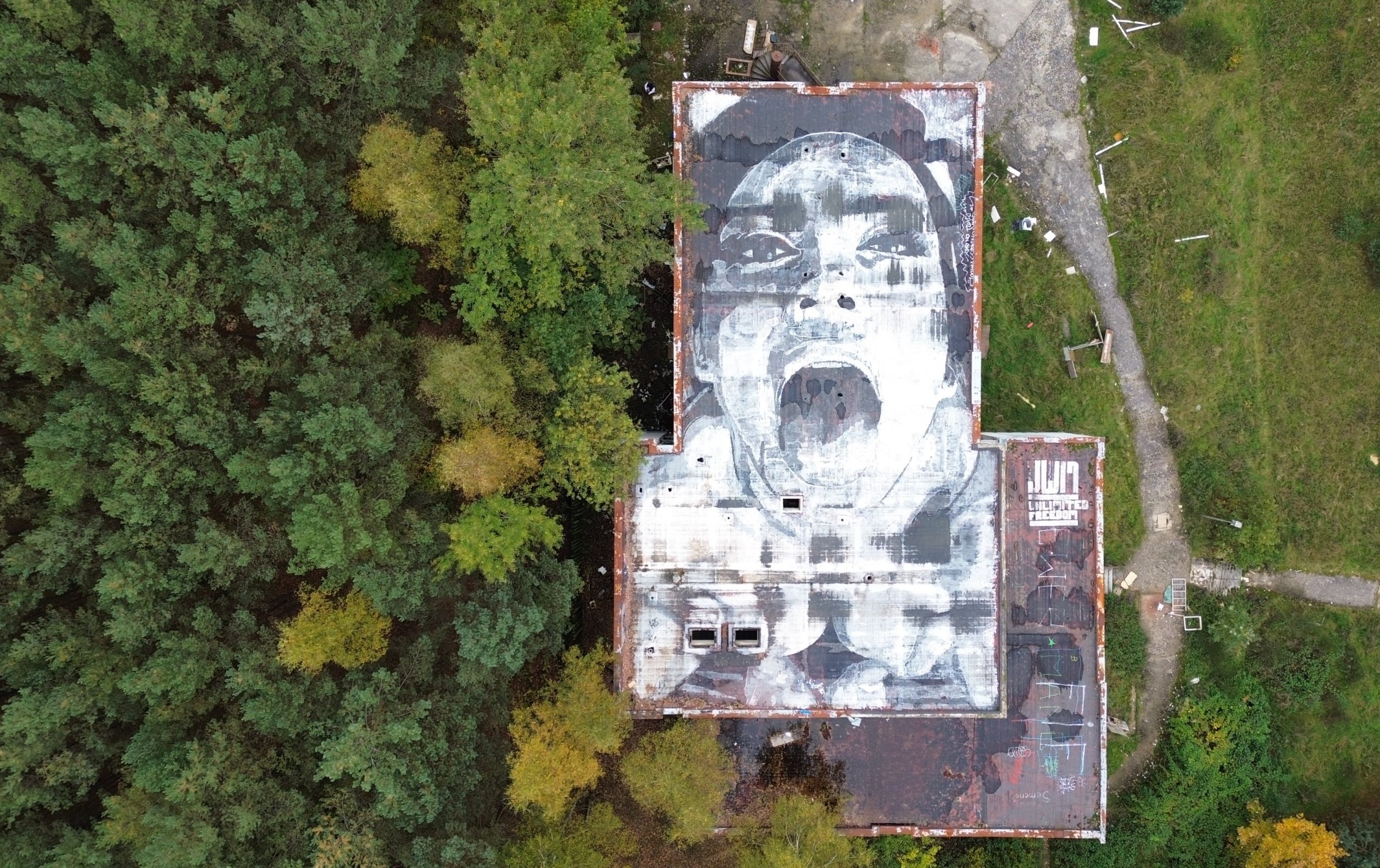 Ritchiem alias Unlimited Freedom rozhodli, že se pobaví při své oblíbené činnosti a zároveň potěší milovníky graffiti, street artu, urbexu a krásných žen (zde by však například feministky mohly nesouhlasit):-) Jednoho krásného dne, hned, jakmile se přehnala průtrž mračen, vylezli pánové na střechu opuštěné budovy bývalé školy v přírodě a za dva dny zde vytvořili 600 m2 velkou malbu údajně se modlící ženy, jejíž nábožné vytržení je tak veliké, že zapomněla zavřít pusu. Monumentální dílo je dodnes z výšky dobře viditelné a stojí za to si sem udělat výlet.