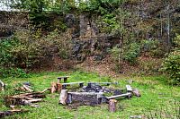 Od pámatníku jdeme po cestě Via Czechia-severní k Lávovému suku Červená hora,který leží uprostřed čedičového lomu.U Lávového suku je malá planinka s ohništěm.Místo je celkem upravené s ohništěm,lavičkami a dobré místo na utáboření a přespání.