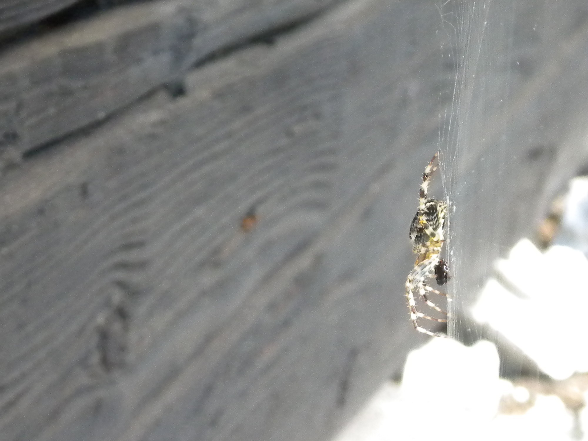Křižák z pavučinou na boku chaty.  autor: rychlobezka