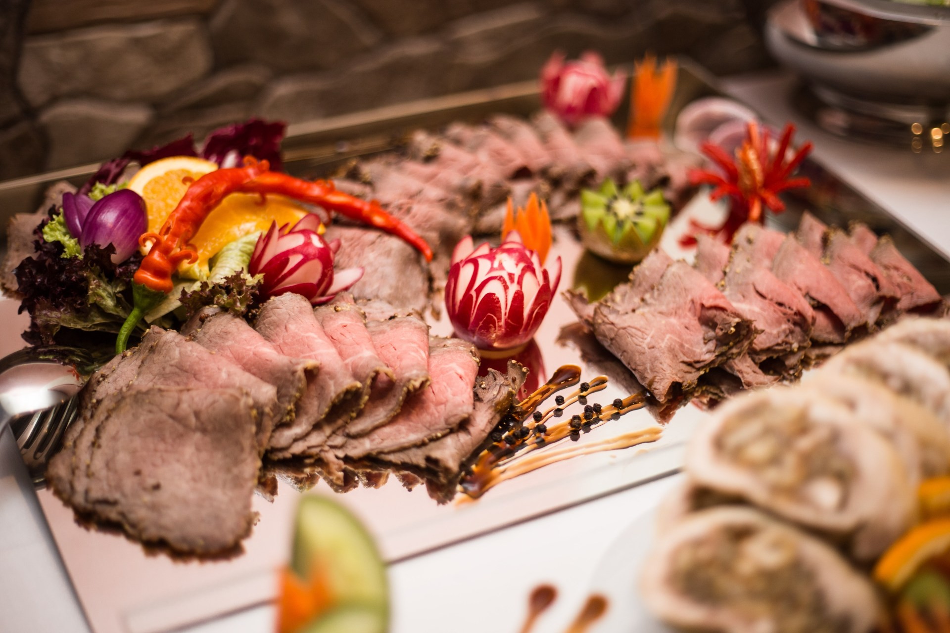 Ochutnat můžete speciality, jako je např. americký hovězí steak z chovu Angus, klasický český tatarák, vepřová krkovička na grilu nebo kuřecí prsíčka Supreme s kostí pečené do křupava, plněné anglickou slaninou a mini mozzarellou. Veškerou minutkovou úpravu steaku upravujeme moderním technologickým postupem souse – vide, což je vaření ve vakuu při nízké teplotě pro zachování nutričních hodnot. Naše pokrmy připravujeme z čerstvých a kvalitních surovin.