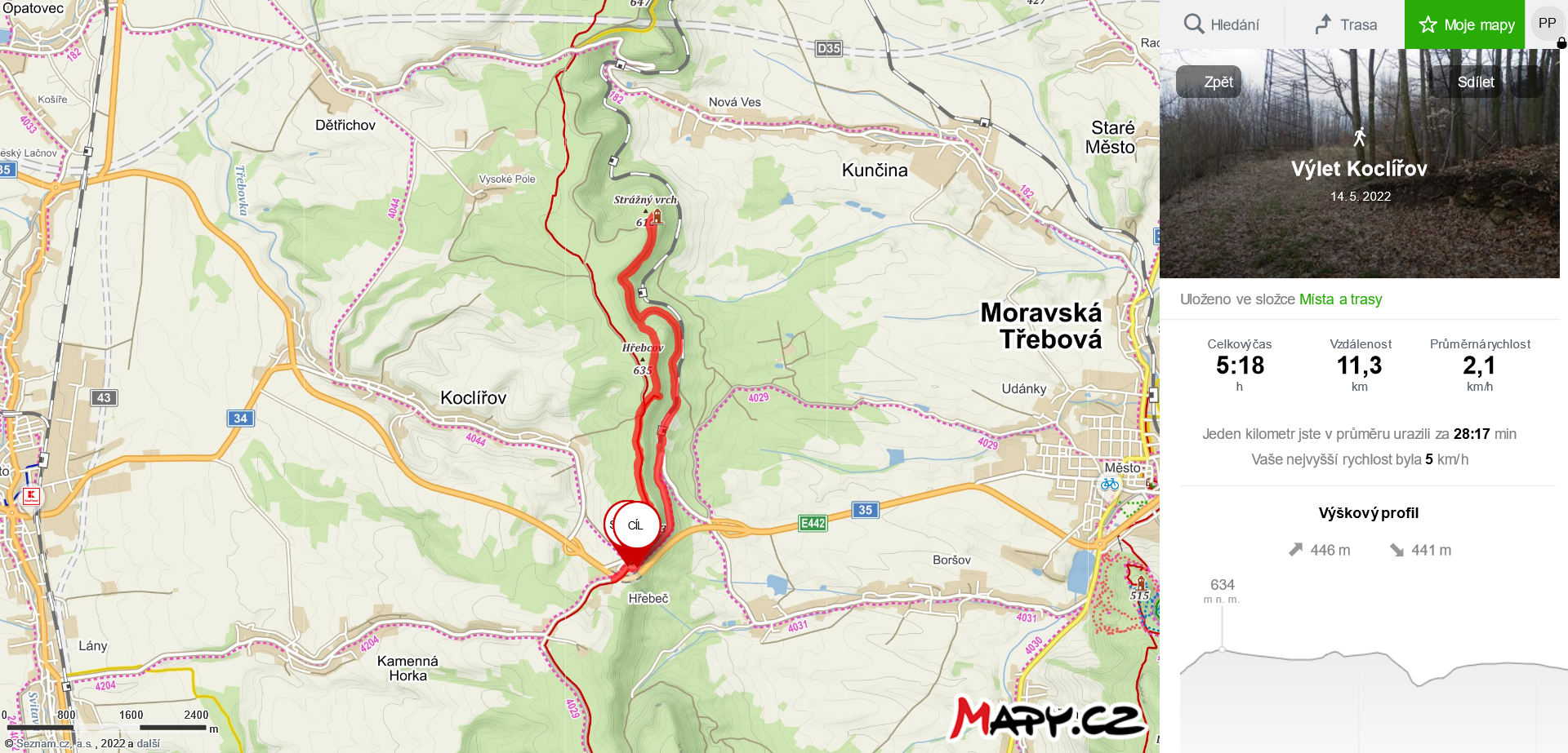 Autem jsme dojeli do obce Hřebeč na parkoviště u restaurace U TETY,která ovšem o výkendu zavřená.Ale je to dobré místo,odkud vyrazit na Hřebečské důlní stezky.Stezka vede od parkoviště po červené a zároveň sní souběžné zelené značce.Po velice mírném stoupání míjime vrchol Hřebečov 623m.n.m. s vysílačem.Po 150 metrech od vysílače dojdeme k odbočce k přístřešku Altánek.Je bokem od cesty a schovaný v lese.Ideální místo pro turisty,kteří zde budou chtít přespat.Pokračujeme dále po červené k rozcestí Nad doly.Červená značka se dělí na dvě části.Ta v pravo nás dovede k vyhlídce s názvem Nad doly a tady část červené značky končí.Je nezvyklé,že k vyhlídce se tentokrát nestoupá ale sestupuje dolů po 124 schodech na plošinu a máte krásný výhled na krajinu směrem k Moravské Třebové.
