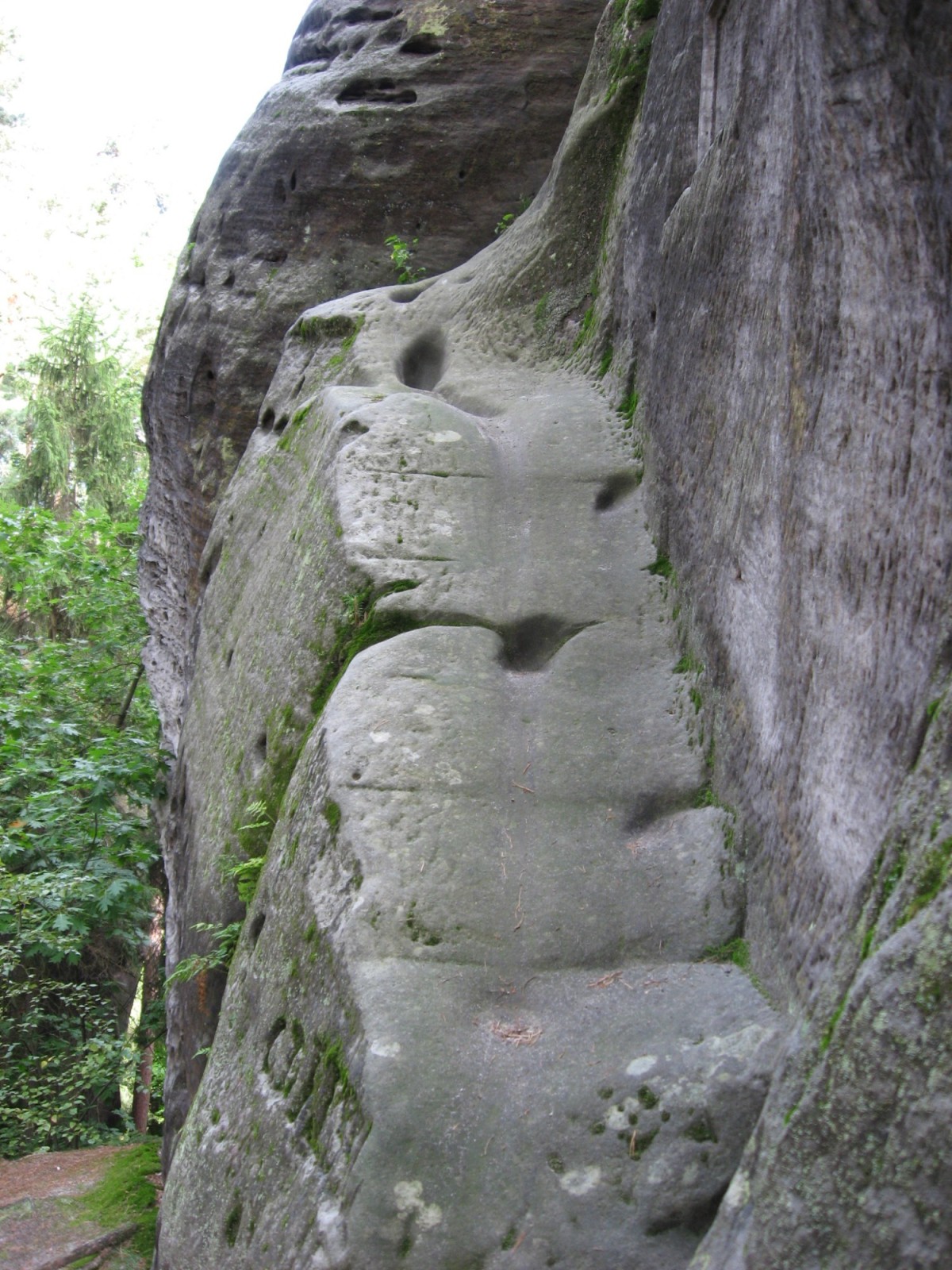 Z parkoviště se vydáme 65m dlouhou Myší dírou po zelené k Adamovu loži. Adamova lože je sluj v pískovcových skalách, kde můžeme vidět vytesaný oltář lásky, mileneckou dvojici, sošku Amora a velkou pohovku se lvy. Ze sluje vystoupáme po schodech a dostaneme se na rozcestí u Adamova lože a pokračujeme 1km po žluté na Mariánskou vyhlídku z které je krásný výhled na zámek Hrubá Skála, hrad Trosky nebo Kozákov. Z vyhlídky pokračujeme po žluté 200m k symbolickému hřbitovu horolezců a dále skalním městem 800m na rozcestí Antonínův pramen. Dál pokračujeme po modré 3km k hradu Valdštejn. Cestou míjíme Antonínův, Josefův a Korenského pramen. Procházíme okolo Kapelníka, Sfingy, Čertovy ruky a po zdolání mnoha schodů a značného převýšení se dostaneme na Janovu vyhlídku, odkud se nám otevřou krásné výhledy. Dál pokračujeme po modré 500m na rozcestí U Kavčin, Dál pokračujeme po červené 500m k hradu Valdštejn.