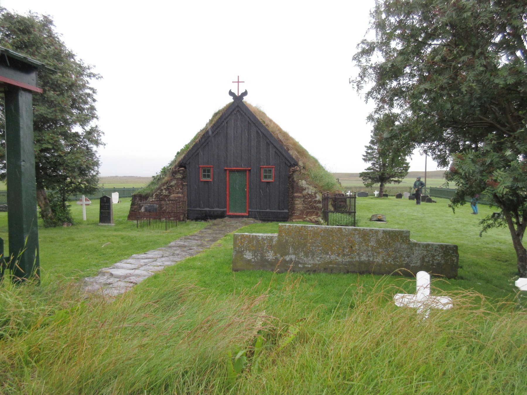 Z pohledu parkoviště je za skanzenem novější zděný kostel Glaumbæjarkirkja z r. 1926. V letech 1876 – 1925 zde byl také dřevěný.