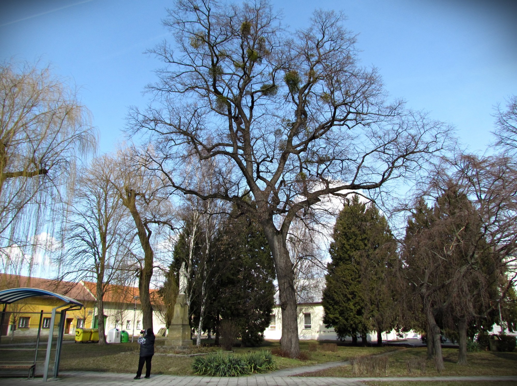 U zastávky autobusu na náměstí u pošty nás ihned zaujaly fotogenické mraky s tmavě modrým nebem a malebnost stromů, takže si to tu fotíme. Pak odtud procházíme uličkami kolem školy až dojdeme k historickému centru. Zde nás zaujala zdejší hlavní památka - kostel sv. Martina s kapličkou.