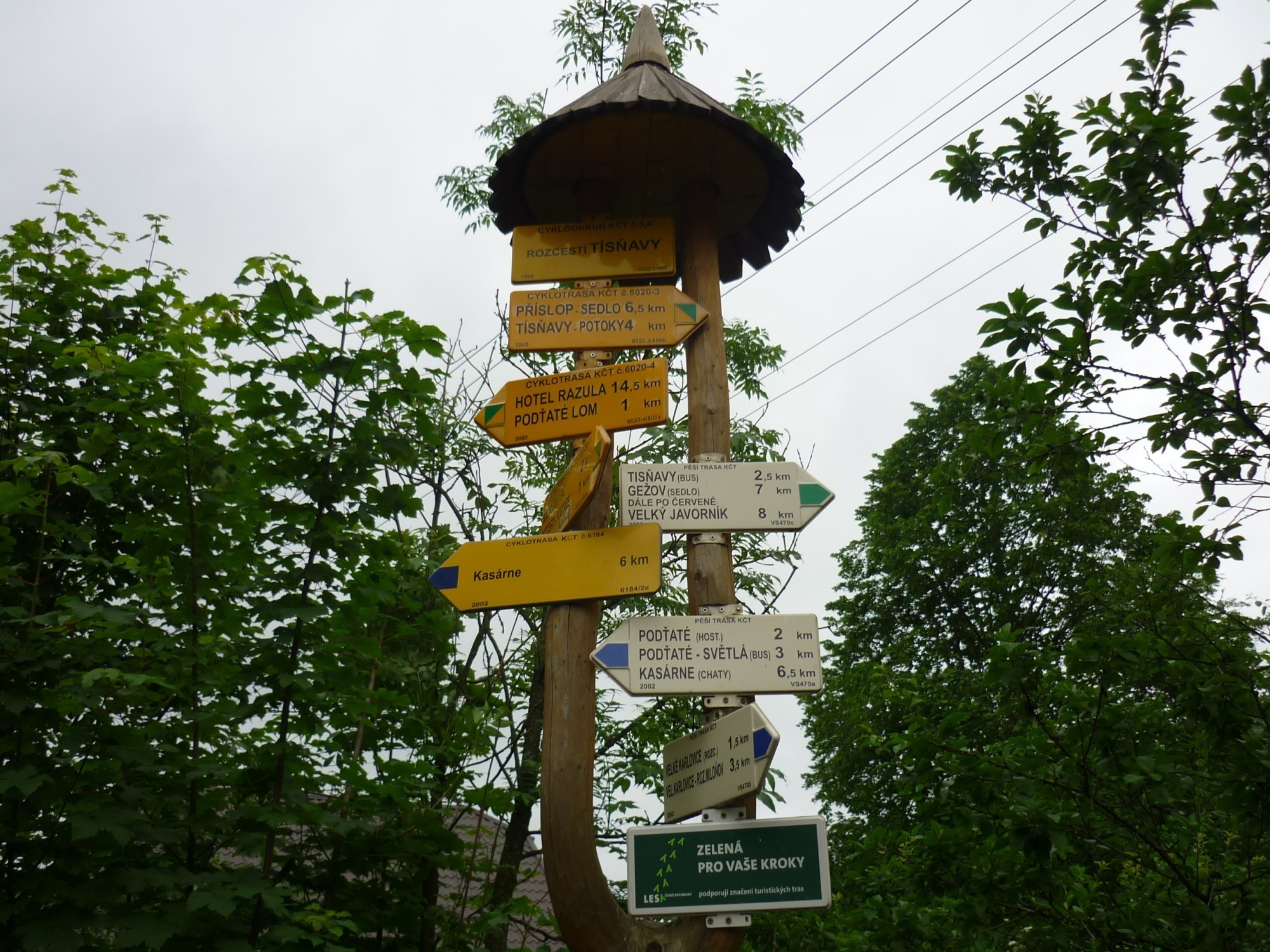 Naším cílem je dnes Hřebenovka Javorníků. Na víkend je hlášeno pěkné počasí, ráno ve Zlíně úplně jasná obloha a tak vyrážíme s optimistickou náladou a v letním oblečení. Už za Vsetínem se počasí horší, přivlékáme hned v autobuse další vrstvu a když vystupujeme na startu naší vycházky: ve Velkých Karlovicích - rozcestí Tísňavy, lehce mží. Z tohoto rozcestí jsme se vydali po zelené značce směrem k hřebenu Javorníků.