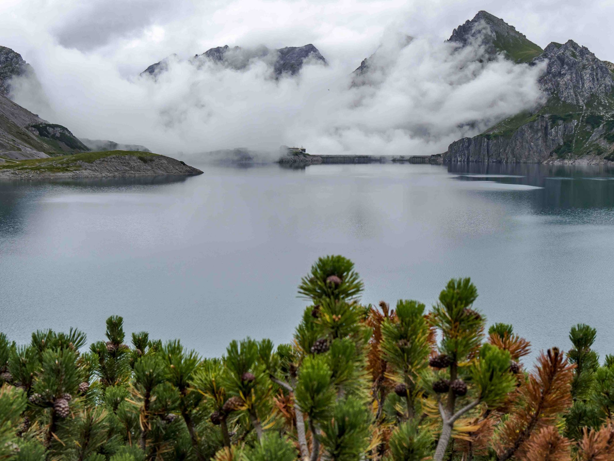 Nad jezero přichází z údolí mraky