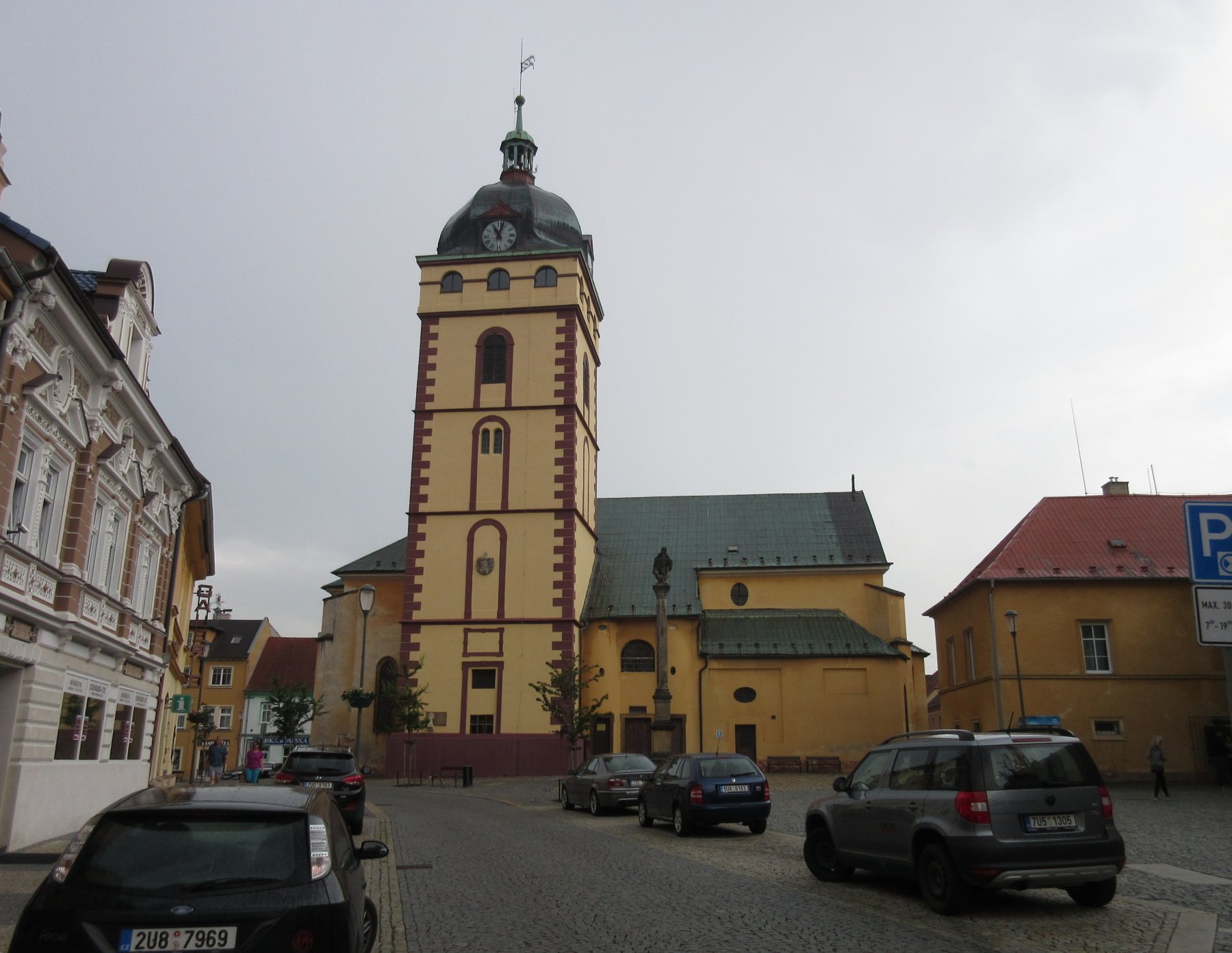 My jsme ve městě zdarma zaparkovali v Chomutovské ulici u Svojsíkových sadů. Kostel svatého Jiljí s městskou věží jsme měli prakticky před sebou. Byl postaven ve stylu pozdní gotiky r. 1538 na místě raně gotického obranného kostelíka z doby kolem r. 1300. Jeho zbytky byly v novém kostele využity. Byli tam pohřbeni členové zde žijících šlechtických rodů. V letech 1540–1545 byla přistavěna městská věž. Od června 2003 je tato 29 metrů vysoká věž zpřístupněna veřejnosti jako vyhlídka. V interiéru jsou výstavními prostory. Tam je také netradiční Muzeum Jirků – expozice je věnována slavným nositelům tohoto jména. Jsou tam např. lyže Jiřího Rašky, loutka režiséra Jiřího Stracha a mnoho dalšího.