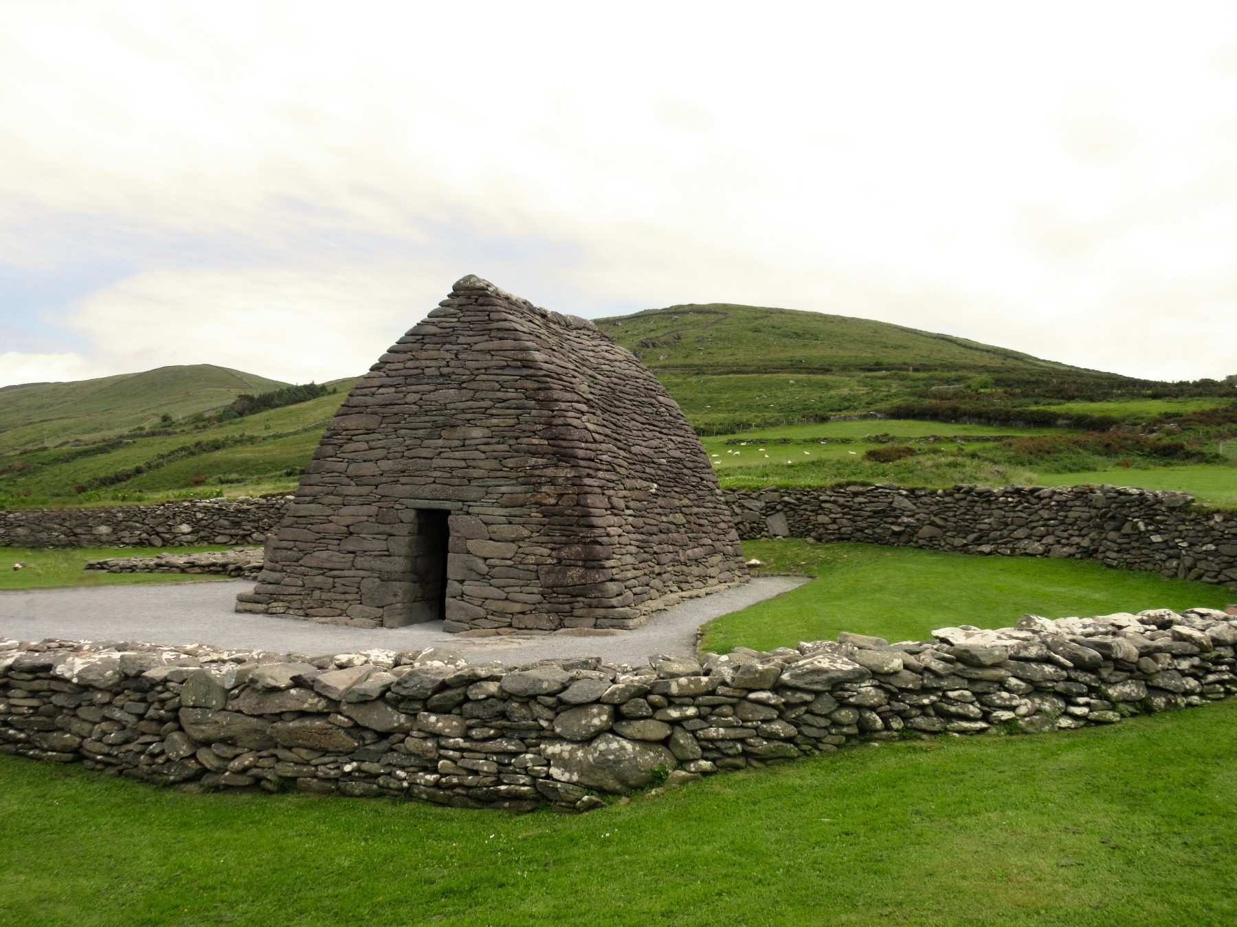 Kaple Gallarus Oratory je pravděpodobně pohřební kaple, není přímo na pobřeží, ani přímo na okružní trase The Dingle Way, ale není to od ní daleko. Silnice R559 vás na parkoviště téměř dovede. Podobných raně křesťanských kamenných kostelíků je v Irsku prý přibližně dalších 30, ale tento je z nich nejzachovalejší. Jako jediný nemá střechu probořenou. Kameny jsou naskládány na sebe bez jakéhokoli pojiva. Tato stavba byla objevena až r. 1756. Jenže o stáří těchto staveb se vedou neustále polemiky. Někdo se přiklání k verzi, že se jedná o stavbu z 6. - 7. století, ale jinde se dočítám, že to může být stavba z 12. století.