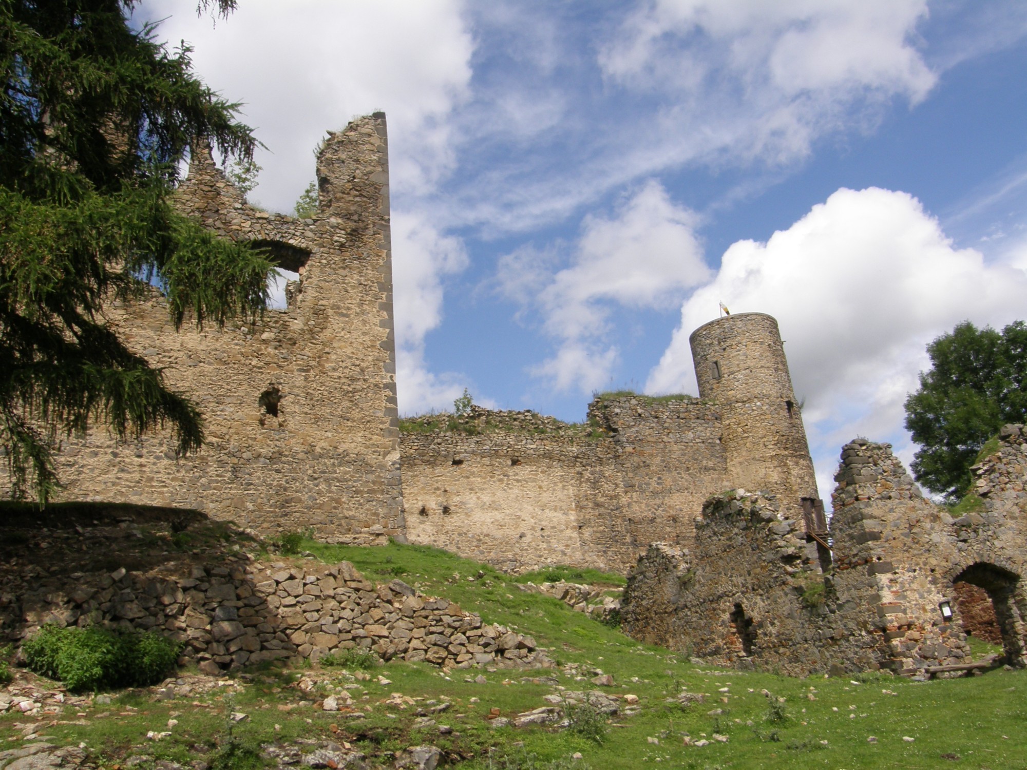 Rozsáhlé zříceniny původně rožmberského gotického hradu ze 14. století. Areál hradu opevněný valy, příkopy, mohutnými hradbami s dělovými baštami. Zachovány vstupní brány, torzo třípatrového paláce, kamenné znaky Rožmberků. Válcová věž upravena jako rozhledna. Pěkný výhled na Šumavu.HISTORIE-Stavbu hradu povolil Petrovi, Joštovi, Oldřichovi aJanovi zRožmberka vroce 1355 Karel IV. Vmajetku tohoto rodu hrad setrval skrátkými přestávkami až do roku 1593, kdy ho Petr Vok prodal městu Prachatice, ajiž koncem 16. století se připomíná jako pustý. Původní dispozice byla trojdílná. Dvoupatrové dvoupalácové jádro hradu obíhal parkán. Oba paláce obsahovaly vkaždém podlaží po dvou místnostech abyly podsklepeny. Hlavní obytné areprezentační prostory bývaly vprvém patře, kde se dochovaly izbytky táflované světnice. Spojení jednotlivých prostor vpatře umožňovala plochostropá arkáda, která nesla uzavřenou chodbu, obíhající jak průčelí paláců, tak spojovací hradby. Paláce je původně opatro převyšovaly. Obklopovalo je druhé nádvoří polookrouhlého obrysu, přičemž jádro leželo zhruba ve středu rovné strany. Její nároží zaujala na jedné straně druhá věžovitá brána ana straně druhé štíhlá okrouhlá věž. Hospodářská zástavba přiléhala khradbě opatřené cimbuřím. Přední, značně nerovná část dispozice ležela před čelem vnitřního areálu. Vedle kulisové brány včelní hradbě se vypíná okrouhlý bergfrit, přístupný vpatře sedlovým portálkem. Vletech 1477-83 přistoupili Rožmberkové kvýrazné přestavbě hradu. Hlavním cílem bylo nepochybně zlepšení obranyschopnosti, proto se práce prakticky nedotkly jádra. Výraznějších zásahů se dočkalo druhé nádvoří. Jeho hradbu zvýšila nadezdívka (v níž jsou doposud velmi dobře patrny zuby původního cimbuří) azměn se dočkala izdejší hospodářská zástavba. Tíha obrany se však přesunula na novou část dispozice na čelní straně. Její hradbu zpevnily tři protáhle polookrouhlé plochostropé bašty, znichž jedna byla uzavřená advě otevřené. Jejich střílny umožňovaly použití pouze lehčích děl. Do nového nádvoří, kjehož čelní hradbě byly přistavěny další, nejspíše hospodářské budovy, se vcházelo čtverhrannou vysunutou věžovitou branou. Jádro prvé fáze hradu náleželo dvoupalácové dispozici, která měla vdobě karlovské vyloženě prestižní amódní charakter. Menší rozsah aobranné nevýhody zjevně vedly Rožmberky (podobně jako na přibuzném Maidštejně) kdoplnění módního jádra odalší části dispozice, vnichž byly užity vpestré kombinaci dobové prvky hradní architektury včetně věží. Pozdně gotické opevnění obsahuje velmi pokročilé prvky azároveň představuje jednu zmála dobře datovatelných fortifikací počátků doby jagellonské.