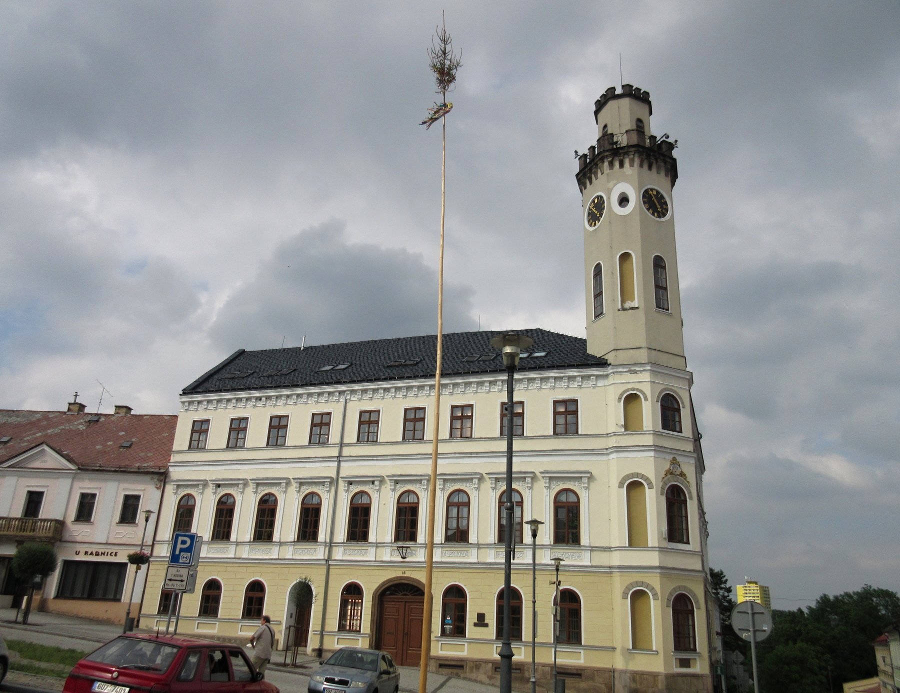 Dominantou náměstí je radnice z let 1855 – 1860. První radnici měli pravděpodobně už v 16. století, ale během následujících 300 let několikrát vyhořela. R. 1859 vyhořela i nová novorenesanční radnice. Současná pseudorenesanční stavba je z 2. poloviny 19. století. Její osmiboká věž však není přístupná. Na náměstí jsou klasicistní a empírové domy z konce 18. a počátku 19. století.