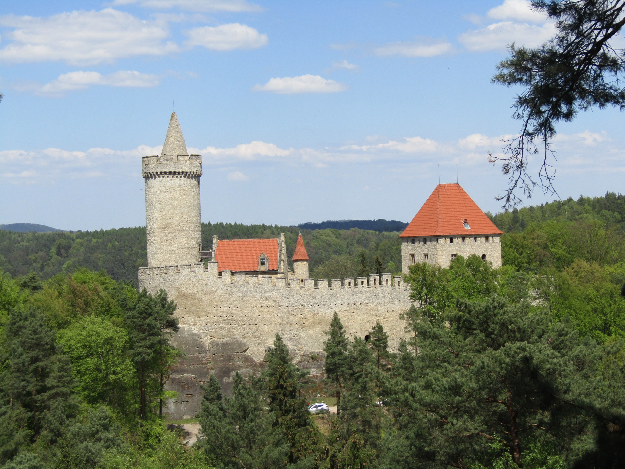 Nejpve chceme navštívit hrad, ležící na ostrohu pískovcové skály nad Kokořínským dolem, vybudovaný Janem Lucemburským. Mezi majiteli vystřídala řada význačných šlechticů a šlechtických rodů, ale po Bílé hoře majetek zkonfiskován a prodán Valdštejnům. Po smrti Albrechta z Valdštejna přešel Kokořín opět do královského držení. Po důkladné prohlídce hradních zřícenin se jdeme podívat na 2km vzdálený skalní útvar, turistům známý jako Kokořínské pokličky. Od parkoviště u hradu sem vede červená turistická značka. Zpět se vracíme po silnici, asi v půli cesty-u tábořiště-nacházíme odbočku zelené turistické značky ke Skalnímu hradu Nedamy.