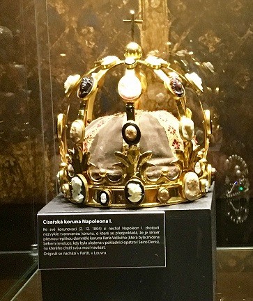 A co můžeme vidět? Například nádhernou rakouskou císařskou korunu, žezlo či jablko z dob Rudolfa II. Dále je zde například vystavena Svatoštěpánská koruna Uherského království. Za zmínku stojí určitě proslulá koruna francouzského krále Ludvíka XV. nebo několik korun i vavřínový věnec od Napoleona I. Výstava nás zavede i do exotických zemích, například do Siamského království do dob dynastie Pahlaví nebo do Etiopie, kde můžete obdivovat korunu etiopského císaře Menelika II. Samozřejmě je zde zastoupená i celá škála korun od panovníků z Velké Británie. Smile