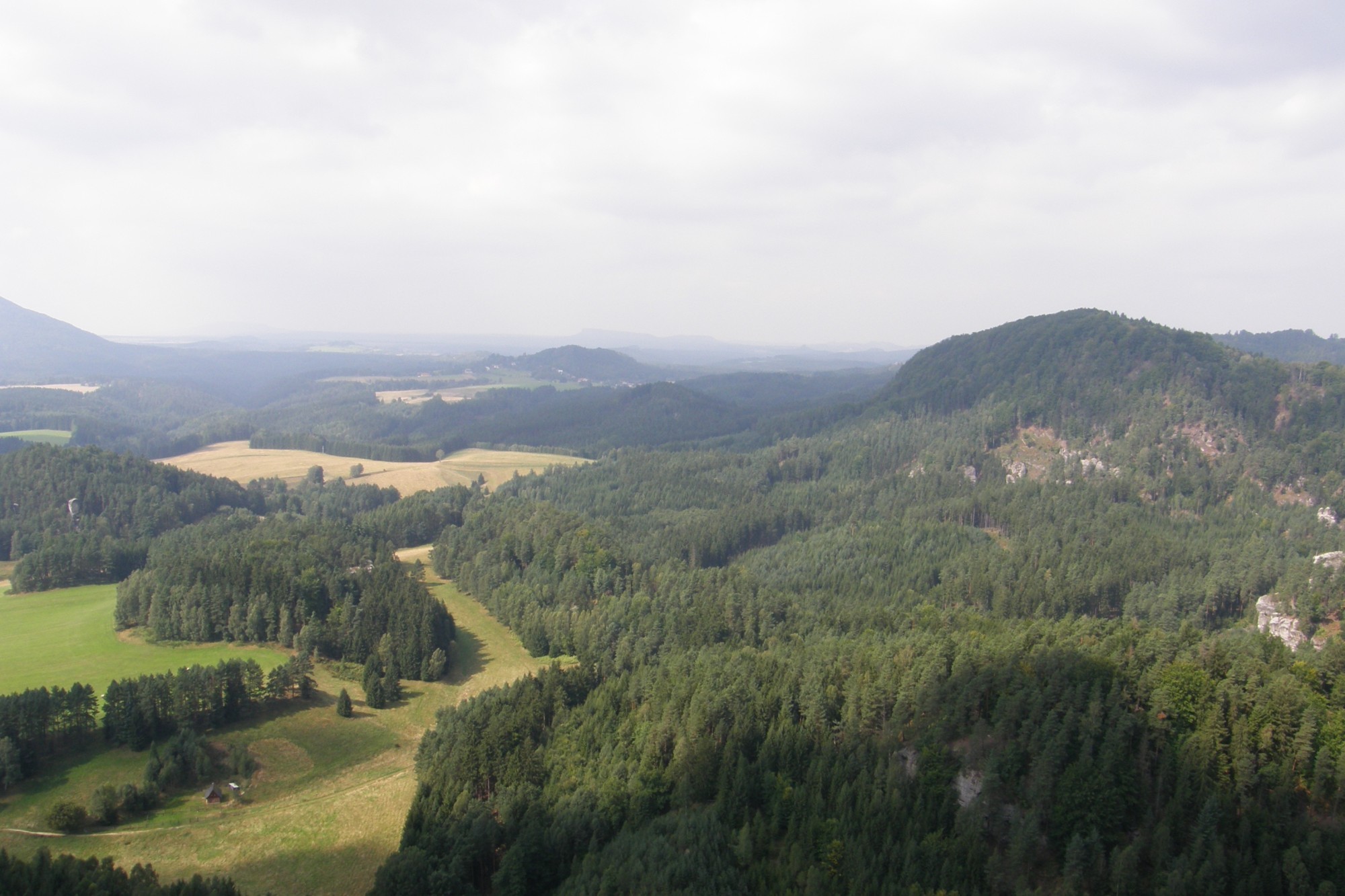 Poslední vyhlídka je o zhruba 2km dále,přes rozcestí tur.cest Purkratický les,odkud je možné volit variantu sestupu Na Tokáň(žlutá) a poté zpět do Jetřichovic(kombinace modré a žluté zn.)