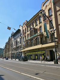 Naší poslední zastávkou pak bude Národní třída, kde se nachází dvě skvostné ukázky secese – Topičův dům a palác Pojišťovna Praha. Pod oběma je podepsán pražský architekt Osvald Polívka, takže nepřekvapí ani další jméno, a to Ladislav Šaloun. A, samozřejmě, i tady se pohybujeme v I. desetiletí minulého století.