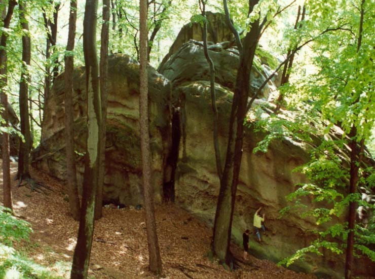 Krásnými bukovými lesy pokrytá, členitá vrchovina – Chřiby, leží téměř uprostřed Moravy, přičemž od sebe odděluje dva jiné zeměpisné celky – Hornomoravský a Dolnomoravský úval s jejich přirozenou osou, tvořenou řekou Moravou. Geomorfologicky jsou Chřiby tvořeny zvrásněnými paleogenními pískovci, jílovci a slepenci magurského flyše, jen tu a tam vystupujícími v podobě osamělých skalních útvarů na Budačině, Komínkách, Holém kopci či Buchlovském kameni. Mírné podnebí a rozsáhlé lesy, hojnost zvěře a úrodné půdy i dostatek povrchových toků lákaly odedávna člověka k usídlení v celé této oblasti. První se zde objevily tlupy paleolitických lovců, zanechávajících po sobě nálezy četných pazourkových nástrojů na lokalitách Nová Dědina, Bělov, Žlutava, Boršice a jinde. Intenzivně začala být krajina osídlována v neolitu, v době prvních zemědělců. Po nich i po následujících dalších pravěkých kulturách zůstalo mnoho nalezišť, sídlišť i pohřebišť archeology soustavně zkoumaných po obou stranách Chřibů. Člověk se však pohyboval i v jejich lesních masivech, v nichž často nalézal ochranu, jak o tom svědčí systematická výstavba hradišť lidu lužických popelnicových polí v lokalitách Brdo, Holý kopec či Jestřabice. Chřiby jsou tedy jistě historicky zajímavou oblastí, ovšem i místem pro uskutečnění mnoha nádherných výšlapů. Na jaře lákají čerstvě zazelenalými bukovými lesy a nádherně kvetoucími Loukami, na podzim zase vymaluje přírody chřibské lesy všemi barvami. Po Chřibech se dá nachodit spoustu kilometrů, vede tu mnoho turistických značek se spoustou tras, z nichž bych chtěl popsat alespoň některé. Jedním z výchozích míst pro výlety je turistické středisko s chatou Bunč, nacházející se v hlubokých lesích na hřebeni Chřibů, dostupné po silnici Staré Město – Zdounky. Z Bunče se tedy vydáme společně s červenou značkou a zelenou naučnou stezkou východním směrem po hřebeni k rozcestníku do sedla pod Komínky, odkud už pokračujeme mírným sestupem zelenou nauč. stezkou do Kudlovické doliny. Cesta vede kolem rekreačního střediska, kde je možno se občerstvit a dále pak již opět vzhůru lesem k rozcestníku pod Budačinou. Prohlídka tohoto malého labyrintu pískovcových skal, v němž se podle pověsti zdržovali zbojníci, známí slezští hrdinové Ondráš a Juráš, uspokojí milovníka přírodních krás. Skalní útvary jsou protkány i mnoha horolezeckými cestami různých stupňů obtížnosti. Po prohlídce se pak vydáváme po modré značce přes Kudlovickou dolinu nahoru do kopců, až k rozcestníku pod Kozincem, kde přejdeme na červenou značku a přes nádherné Louky s výhledem na jihozápadní část Chřibů s hradem Buchlov pokračujeme lesem přes Kroměřížský kopec až k pískovcovému bloku Komínky, vystupujícímu z hlavního hřebene ve výšce 521 m.n.m, a tvořícímu největší skalní útvar Chřibů. Vytesané schůdky v pískovcovém bloku nás zavedou na příjemné odpočívadlo na jeho vršku. Cesta zpět na Bunč vede opět společně s červenou a zelenou nauč. stezkou, tento okruh měří asi 15 kilometrů. Na jinou, neméně zajímavou túru lze vyrazit od kostela v Koryčanech ze severní části Chřibů, po zelené značce stoupáním na náhorní planinu Vršava s dalekým výhledem po okolních kopcích. Odtud pak mírně sestupujeme kolem potůčku a opět nahoru kolem bývalého lomu až k mohutné zřícenině hradu Cimburk, postaveného roku 1330 na vyčnívajícím pískovcovém ostrohu k ochraně obchodních cest. Po zelené značce pak odtud pokračujeme ještě chvíli až k rozcestníku se studánkou U mísy, jejíž chladná pramenitá voda vytékající ze skály stojí za ochutnání a doplnění zásoby. Dále ještě stoupáme po červené značce asi kilometr k pískovcovému skalisku Kazatelna s vytesanými schůdky a výhledem na severní část Chřibů s vodní nádrží na pitnou vodu Koryčany. Opět sestupujeme dolů ke studánce a po červené značce pokračujeme k dalšímu pískovcovému útvaru, skalnatému bloku zvanému Kozel, sloužícímu jako horolezecký terén. Stále po červené pak opouštíme skály a procházíme rezervací Moravanské Louky, která je tvořena komplexem lesních luk a drobných lesních enkláv s výskytem chráněných druhů rostlin. Je třeba se držet značené cesty, jednak proto, že procházíme rezervací, a také proto že se jedná místy o podmáčené Louky s možností zapadnutí. Po dalších dvou kilometrech narazíme u chatové osady Zavadilka na rozcestník a pak už sestupujeme po žluté značce pomalu dolů z chřibských vrchů zpět do Koryčan; tato trasa měří asi 16 kilometrů. Východiskem jiného, velice pěkného výšlapu je parkoviště pod hradem Buchlov, u silnice od Buchlovic, z něhož se vydáme po silnici nahoru a po chvíli narazíme na červenou turistickou značku. Po ní pak vystoupáme jihozápadním směrem až ke hradu Buchlov. Hrad byl založen v pol. 13. století a byl sídlem pánů ze Zástřizel, Petřvaldských a hrabat Berchtoldů, po nichž zůstaly na hradě četné sbírky přírodnin a starožitností. Hrad nebyl nikdy dobyt a na kopci nádherně vévodí chřibským lesům. Jeho prohlídku si ponecháme až na závěr dnešního výšlapu; mezitím pokračujeme po červené značce do lesa, kolem starého vrchnostenského dvora Zikmundov z poloviny 19. století vystoupáme pozvolna k osamělému pískovcovému skalisku Buchlovský kámen, před nímž však už přecházíme na žlutou tur.značku a hlubokými chřibskými lesy vandrujeme asi 7 kilometrů, než vyjdeme z lesa u chatové osady Chabaně. Při pravé straně cesty si není možno nepovšimnout zdejší rarity, rostoucího sekvojce o obvodu kmene 5 metrů