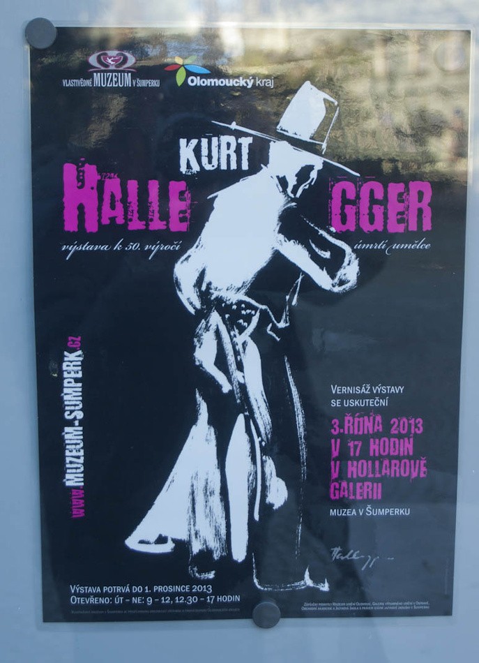 Daleko víc mě však zaujal plakát na výstavu v galerii Václava Hollara. Jedna místnost panského sídla je věnována Kurtu Hallegerovi. Jakožto kulturní barbar sice nevím, čím se vlastně umělec zabýval, ale jako horalovi mě bylo jméno značně povědomé. Obětoval jsem tedy 20,- Kč a jal se kochat.