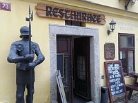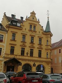 Na náměstí byly zrovna trhy, tak jsme se najedli tam. Moc krásná restaurace je naproti TIC pod hradem.