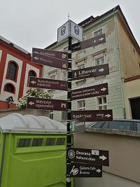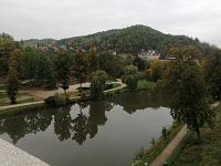 Jako první jsme navštívili Černou věž, pak zašli do hotelu a lihovaru U Bílého koně, kde jsme si zakoupili polovinu vizitek. Poté jsme se vydali do muzea Tajných spolků,  které je součástí pensionu Masonic house a je v něm přes 700 exponátů jako oltáře, cenné knihy či rituální předměty, dále pak následuje muzeum Lázeňských pohárků, kde je jich vystaveno přes 1800 a jsou z let 1780 - 1960 z muzea lze projít do minipivovaru Florián, kde se ve třech místnostech nachází Pivovarské muzeum. Pak jsme si dokoupili zbytek vizitek v TIC pod hradem, navštívili hrad, sešli dolů k amfiteátru a vrátili se z druhé strany zpět na parkoviště.