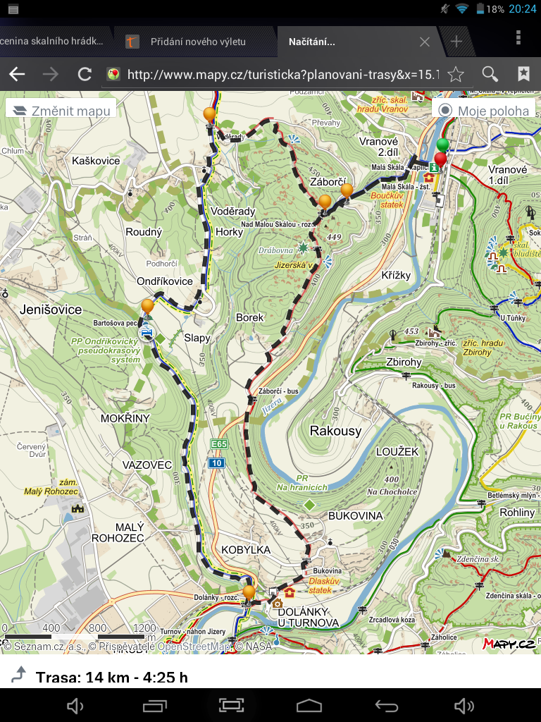 Pokračujeme po modré až do Voděrad, odkud se po červené vracíme k Malé skále. Na rozcestí, které známe z dopoledne jako 'Nad Malou skálou', přecházíme na modrou a sestupujeme do obce.