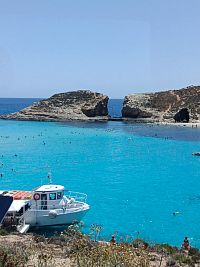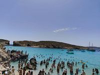 Další naší zastávkou byla modrá laguna na ostrově Comino. Tak to nechcete. Bylo zde tolik lidí, že jsme stáli frontu už při výstupu z lodi. Na chodníku k pláži jste si připadali jak na Václaváku a na pláži a v moři u pláže jak na Silvestra na náměstí. Museli jsme přeplavat na druhou stranu k jeskyni, kde bylo méně lidí.