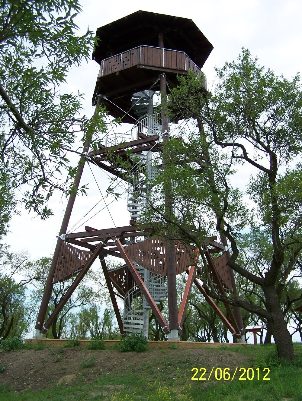 Rozhledna stojí na okraji mandloňového sadu na Hustopečském starém vrchu v nadmořské výšce asi 300 metrů, je vysoká 17,4 m a vyhlídková plošina se nachází ve výšce 1,6 m. Hlavní nosné sloupy jsou z modřínového dřeva, podlahy z dubu a další dřevěné části jsou smrkové. Schody jsou z hliníkových roštů. Rozhledna byla slavnostně otevřena 31. března v roce 2012.
