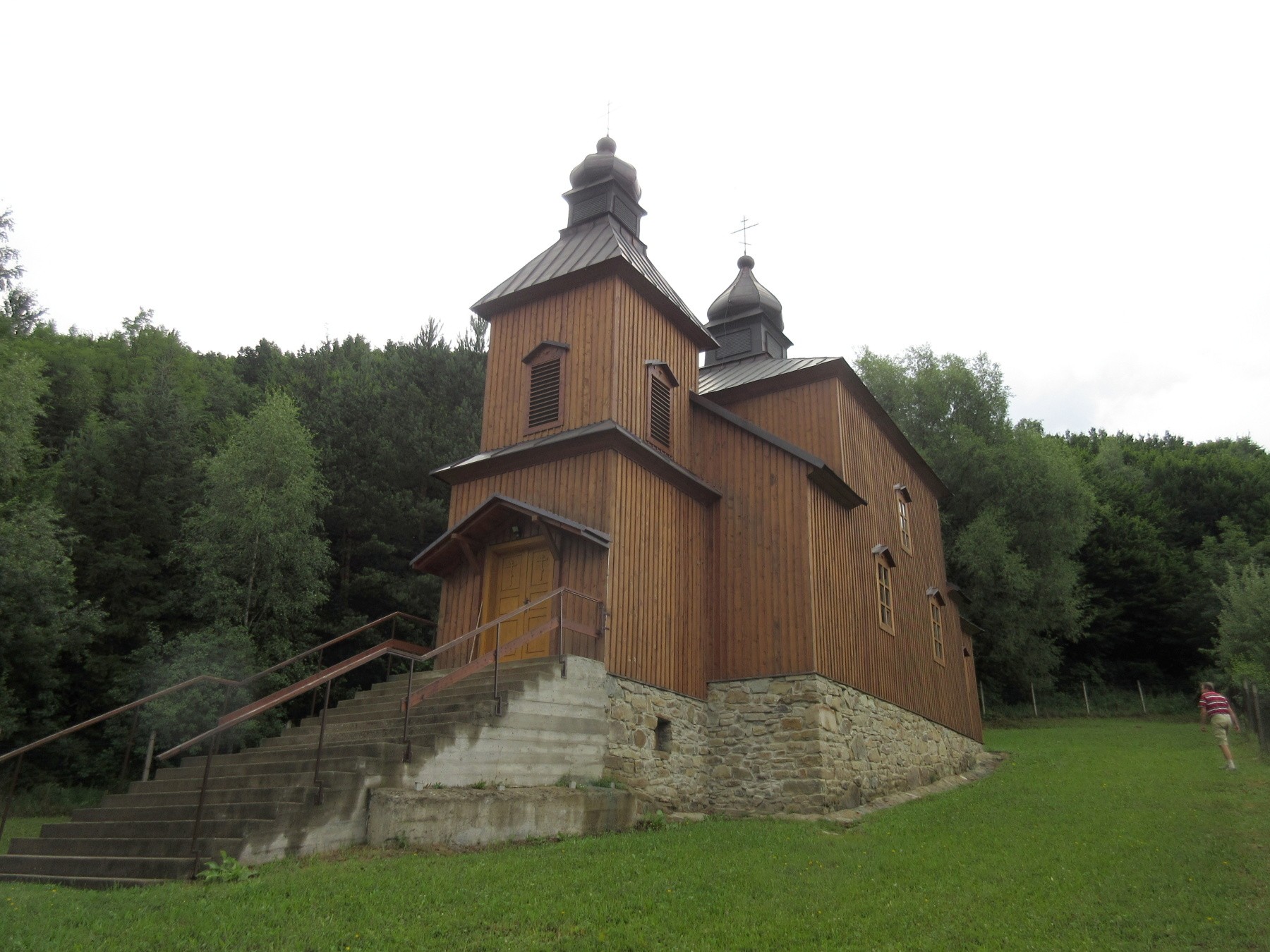 Obec se rozkládá na obou březích potoka Hrišov. Patřila do šarišského regionu. První písemná zmínka je z roku 1573. Jen kousek od hlavní silnice ve svahu je dřevěný kostel. Je to kostel zcela záhadný. Není uveden v seznamu dřevěných kostelů, a to se nám podařilo sehnat krásnou ručně malovanou podrobnou mapku dřevěných chrámů v polsko-slovenském pohraničí. Na kostele nejsou napsány žádné bližší informace, ani komu je kostel zasvěcen. Dokonce zde není ani psáno, zda a kdy se slouží mše. Je vysoký, třívěžový, kamenná podezdívka vyrovnává svah, schodiště do kostela je betonové – dost to ruší celkový dojem. Předsíň - vstupní část kostela je podsklepená - to také není běžná záležitost. Chrámová loď je hodně vysoká – okna se nachází i v patře. Jen střechou se výrazně odlišuje od ostatních dřevěných kostelíků. Je plechová, hnědé barvy a celkově to dojem nenarušuje. A samozřejmě je zamčený. Až doma jsme zjistili, komu je zasvěcen a že byl postaven r. 1903. Interiér je z r. 1947. Jak jsem pátrala po dalších informací, zjistila jsem, že jeho podoba se postupem času měnila. Pravděpodobně byl od začátku dřevěný, jeden čas byl omítnutý, s vysunutou stříškou nad betonovými schody. Nyní je pravděpodobně po rekonstrukci, kdy se mu vrátila snad původní dřevěná podoba. Obrovská stříška nad schody je zrušena a nahrazena malou stříškou nad vchodem. Celkově nevypadá špatně, což můžete z fotek posoudit sami.