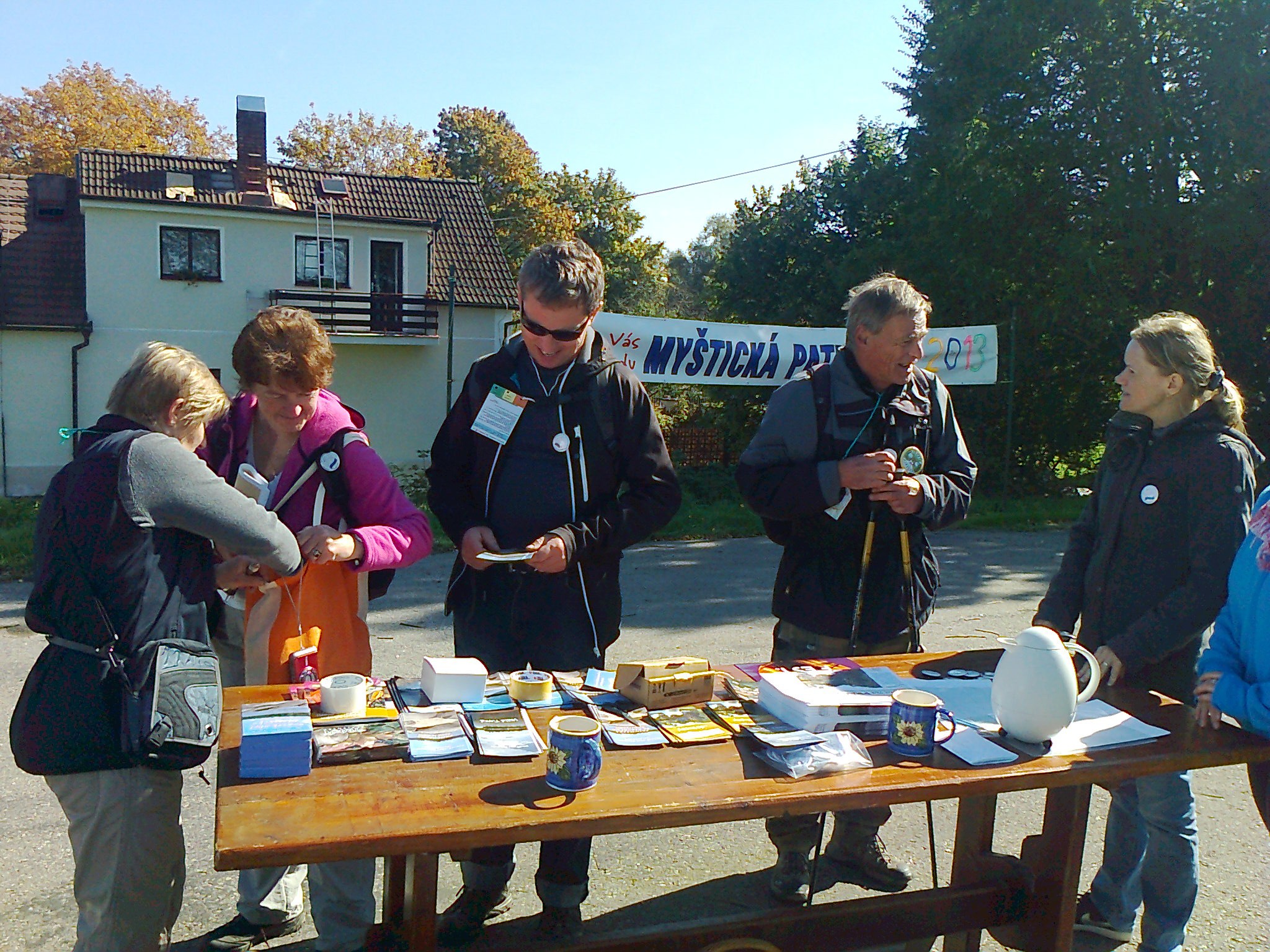 Turistický pochod Myštická patnáctka byl opět výborně připraven pořadatelem a to občanským sdružením Veselé Labutě na den 28.9.2013. Další ročník a další trasa, na kterou jsme se těšili. A ta byla jak jsme tušili zase jiná. Kolik jich pořadatelé ještě mají? Start byl na nám známém místě pod hrází nádherného rybníka Labuť. Na místo jsme dorazili včas tak, abychom si pochod užili a nemuseli neustále hlídat čas. A tak putování začalo v téměř mrazivém počasí, kdy rukavice byly hodně dobré. Vydali jsme se po modré turistické značce k hezkému mlýnu Kostřata, kde se může poutník i ubytovat. Odtud pak po červené TZ směrem Kožlí, ale před Kožlím jsme odbočili vpravo do vesnice Výšice a vydali se k Chrástu. Odtud pak k stanovišti U Nováka, kde byla první kontrola. Ještě se musím zmínit, že od Výšic se nadvlády v počasí ujalo sluníčko a to velmi silně. Jasno a hřejivé paprsky umocnily krásnou krajinu, kterou jsme procházeli. Cesta nás vedla lesem kolem přírodní památky Malý Kosatín, kde se nalézá pestrá květena a kolem kosatínského viklanu viz Fotogalerie. Pak kolem malé osady Brejle do Lučkovic. Tady byla druhá kontrola. Odtud polní cestou kolem lesa na silnici z Lomu do Myšic a po silnici asi 2 km přímo do cíle pochodu. V cíli nás čekalo překvapení ve formě pozornosti v hospodě U Labutě a to velmi dobrého zákusku pro všechny účastníky pochodu viz Fotogalerie. A že byl opravdu dobrý. Pořadatelům pochodu děkujeme za krásný zážitek a stejně tak všem z hospody, kde jsme se výborně najedli za vzornou obsluhu. Všem, kteří by chtěli v letošním roce vyrazit na další ročník Myštické patnáctky přejeme hezké zážitky na zcela nové trase, která bude určitě stejně dobře připravena jako ta letošní. A tak 27. září hurá do Myštic. TK BLAMIŠ.