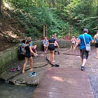 Lze se najíst ve Starobělské kolibě nebo si upéct na ohništi na konci trasy něco dobrého, ale my jsme nekonzumovali nic.