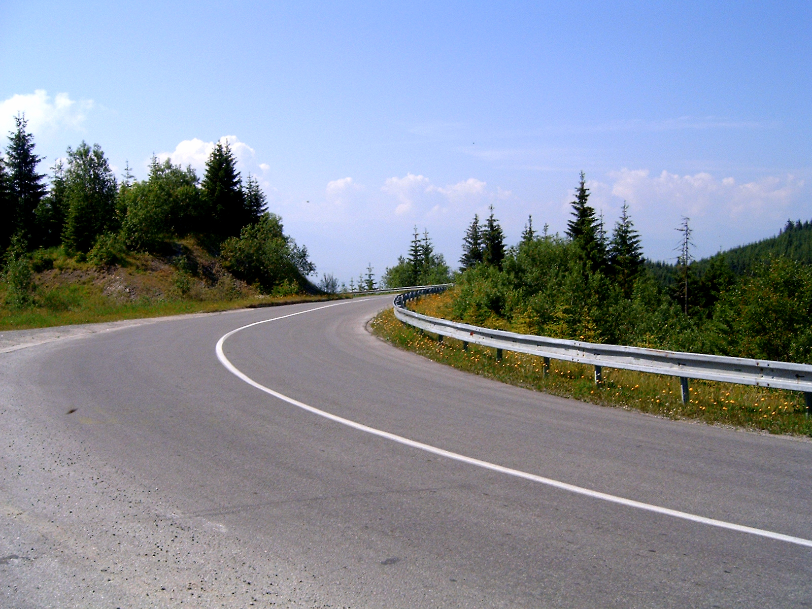 S takovou muší "invazí" jsem se tedy zatím na žádných horách nesetkal, dokonce ani v Alpách, jenž mi v některých úsecích tato silnice hodně připomíná. Stoupání je sice znatelné, ale nikde vyloženě strmé, prostě tak akorát. Dokonce, aby iluze byla dokonalá, nabízí se mi i "orlí pohled" na již zdolaný úsek. Rozdíl je jen v tom, že v Alpách jsou desítky podobných úseků a zde dva, možná tři. Prim hraje hlavně místo, zvané dle poblíž stojící informační tabule "Kóta pod Holicou".