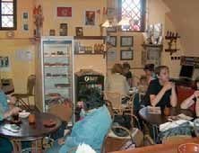 Zcela nekuřácká kavárna je současně i galerií a prodejnou drobných uměleckých předmětů, korálků a originálního oblečení. To si jen Petra přiblížila koníčka do své práce. Mimo to ještě založila svou školu kávy.