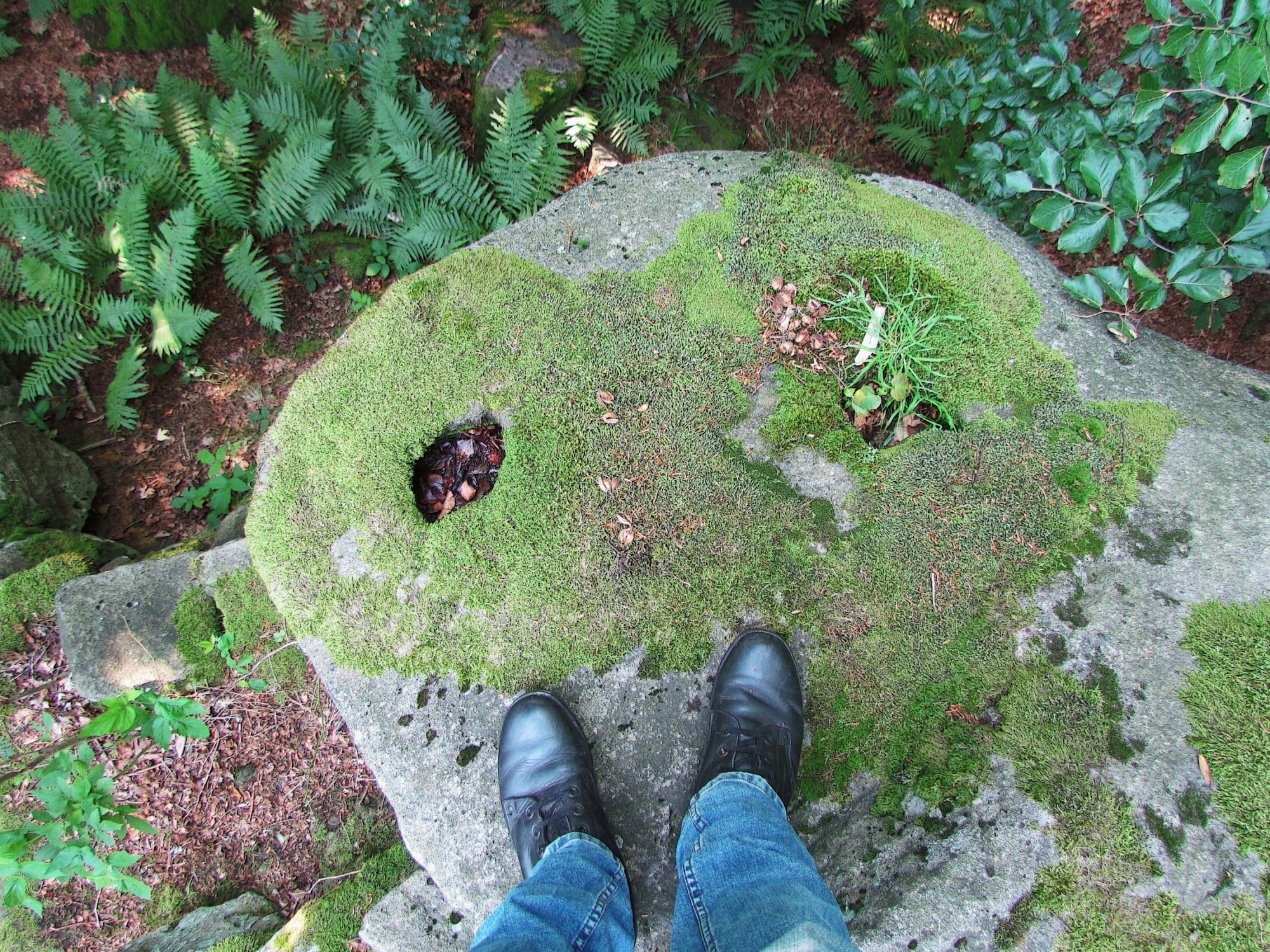 Jak už jsem naznačil, lesní cesta pod shlukem Skalek končí. Dál k vrcholu hory Sochová ( 741 m) vede už jen místy strmější pěšina, která je ale lemována dalšími Skalkami a mohutnými balvany. Většina z nich je pokryta zvláštními kalcifytními druhy mechů, na zemi všude kolem zase zajímavé kapradiny. Na nedalekém vrcholu pak najdeme zajímavovou hříbovitou Skalku, která připomíná z profilu psa, mohutné terasy či schody a pak dvě velké skály, z nichž jedna dosahuje výše skoro 10 metrů a jmenuje se "Kazatelna". Do její nižší stěny - od vrcholku kopce - byly někdy v minulosti vysekány do tvrdého pískovce schody. Vedou až na vrchol skalního útvaru a dobře viditelné záseky pro zábradlí napovídají o tom, že zde kdysi bývalo vyhlášené výhledové místo. Možná se tak stalo už v roce 1863, jak nám napovídá vysekaný letopočet na odvrácené straně skalní kazatelny.