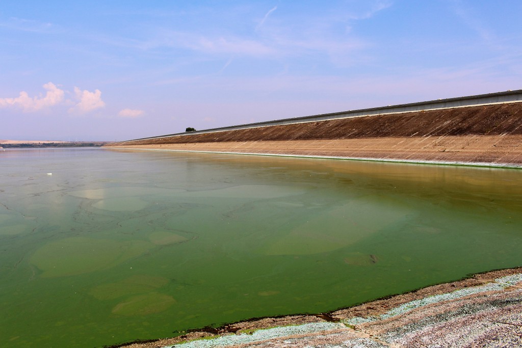 Nechranická přehrada a obec Březno.