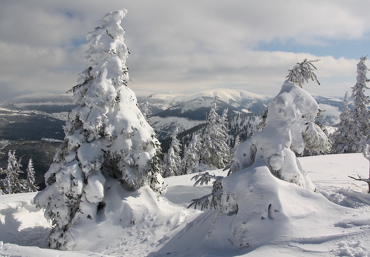 Jaro do hor hned tak nepřijde, a tak Vás zvu na první díl nejkrásnějších vyhlídek v Krkonoších. Na nohou si místo pohorek necháme běžky a vyrazíme z Horních Míseček na krátkou projížďku po okolních vyhlídkách. Klikatou silnicí, která je v zimě lyžařskou magistrálou vyjdeme k první otevřené vyhlídce a hned jakmile skončí les, můžeme se potěšit pohledem do hlubokého zalesněného údolí nad Mísečkami, nebo nahoru na bílé stráně pod Vrbatovou boudou. Již od Vrbatovy boudy je krásný rozhled na všechny strany a popojdeme-li až k Hančově mohyle, uvidíme i Sněžku. Abychom lépe viděli do Kotelních jam, popojedeme na HARRACHOvy kameny. Zdatnější si jistě prodlouží cestu k Pramenům Labe a na Labskou boudu. Při sjezdu dolů nezapomeňte odbočit hned za první zatáčkou po červené na Šmídovu vyhlídku. Opravdu při pěkném počasí stojí za námahu se sem prohrabat i vysokým sněhem. Uvidíte celý hřeben Krkonoš a pocvičit si můžete i jednotlivé horské boudy na svazích a pod sebou uvidíte lamovku Medvědín. Na čaj nebo polévku si zajděte třeba do Jilemnické boudy, po dlouhém sjezdu z hřebenů jistě přijde vhod.