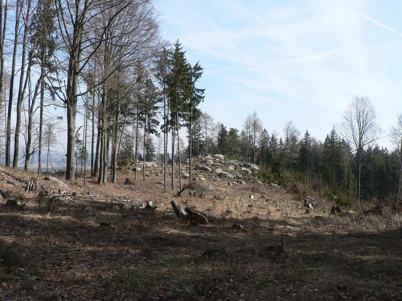 Ze vsi vycházíme polní cestou k západu a pokračujeme lesem pod jižním svahem Hory. Chceme náš cíl vidět i zezdola a jeden z hezkých pohledů se nabídl z luk u Vísky Plichtice. Zacházíme i do vesničky. Vítá nás čistá náves s opravenou kapličkou, ale uzavřenou hospůdkou. Ze vsi odcházíme po žluté směr Plánice. Cestou překvapí větší počet křížků, ze kterých je značná část věnovaná památce zdejším padlým vojákům v I. světové válce. U turistického odpočívadla značku opouštíme a lesní cestou stoupáme po západním svahu Hory. Překvapí značné množství různě velkých kamenů. Les je ve spodní části převážně smrkový a s přibývající výškou se mění i druhová skladba stromů. Začínají převládat borovice s příměsí několika druhů listnáčů. Za prvním, nižším vrcholem na západní straně les řídne a dále procházíme bukovým lesem. Bíločervená tyč nám oznamuje, že jsme na vrcholu. Před námi je rozlehlá travnatá pláň, která končí nižším východním vrcholem. Ten je pokryt velkými kameny a starý posed dává na vědomí, že sem někdy chodí i lidé. Je odtud nádherný pohled k severu a k SV. Na obzoru se modrá pásmo Brd a v hloubce pod námi je rozhozeno několik vesniček a rybníků. Čarovný klid občas naruší přebíhající srny či křik káněte vysoko nad našimi hlavami. Ani se nám odsud nechce. Odud sestupujeme na lesní cestu, po které se vracíme zpět. Na nejvýchodnějším vrcholu je další kamenná pohádka a jeden z kamenů přitahuje naši pozornost, skutečný krasavec. Pokračujeme stezkou ve svahu a docházíme ke kraji lesa. Ten přechází ve starý ovocný sad a za ním již vidíme zdejší lom a první domy Velenov. Kruh se uzavřel.