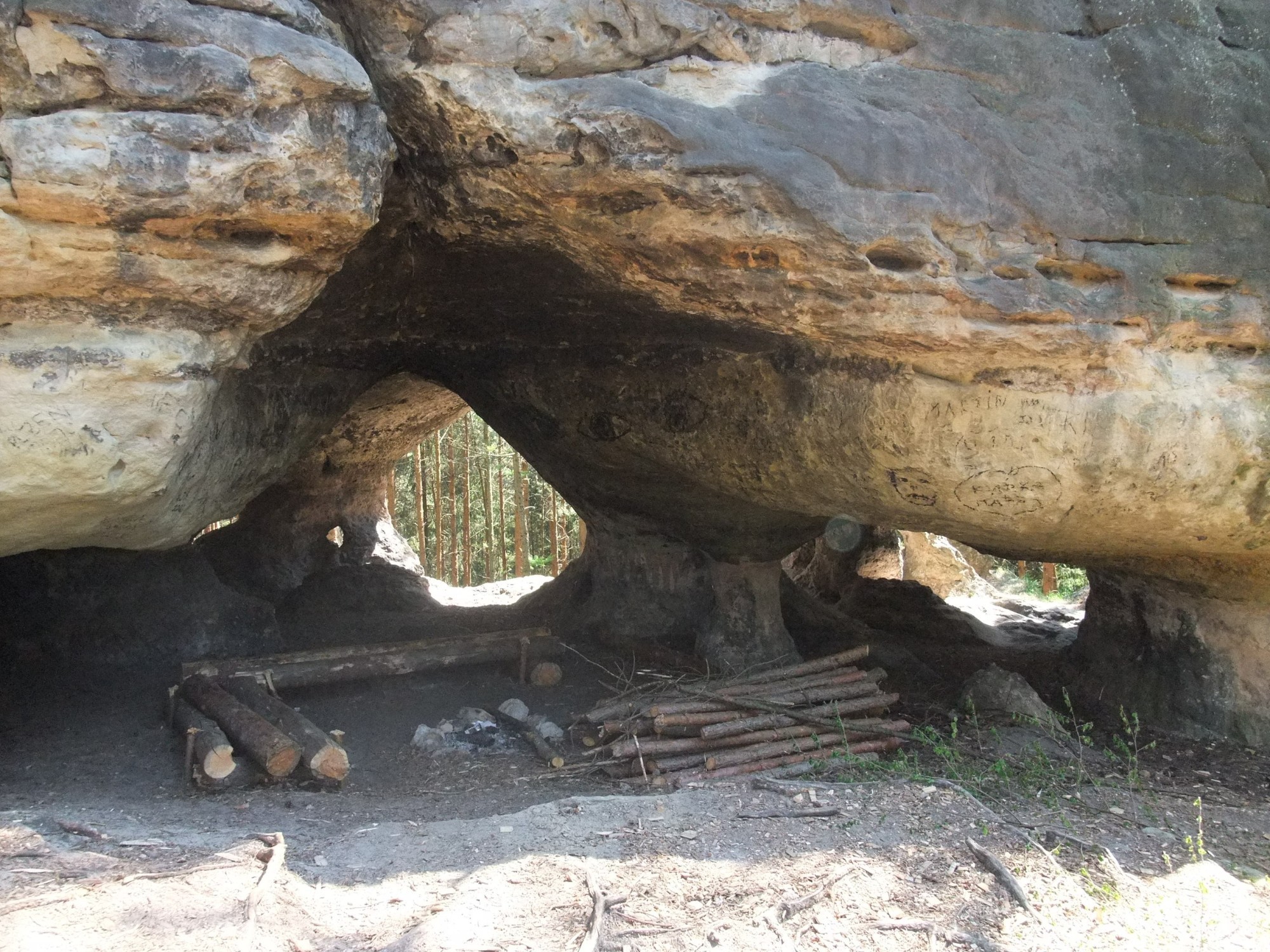 Jedná se o zvláštní pískovcový blok, který byl zřejmě původně jen převisem, kterých je v oblasti povícero. Činností člověka ovšem vznikla jeskyně se sedmi vstupními otvory a s výškou od dvou do dvou a půl metru. Celková velikost prostoru je zhruba 9 x 7 x 5 metrů.