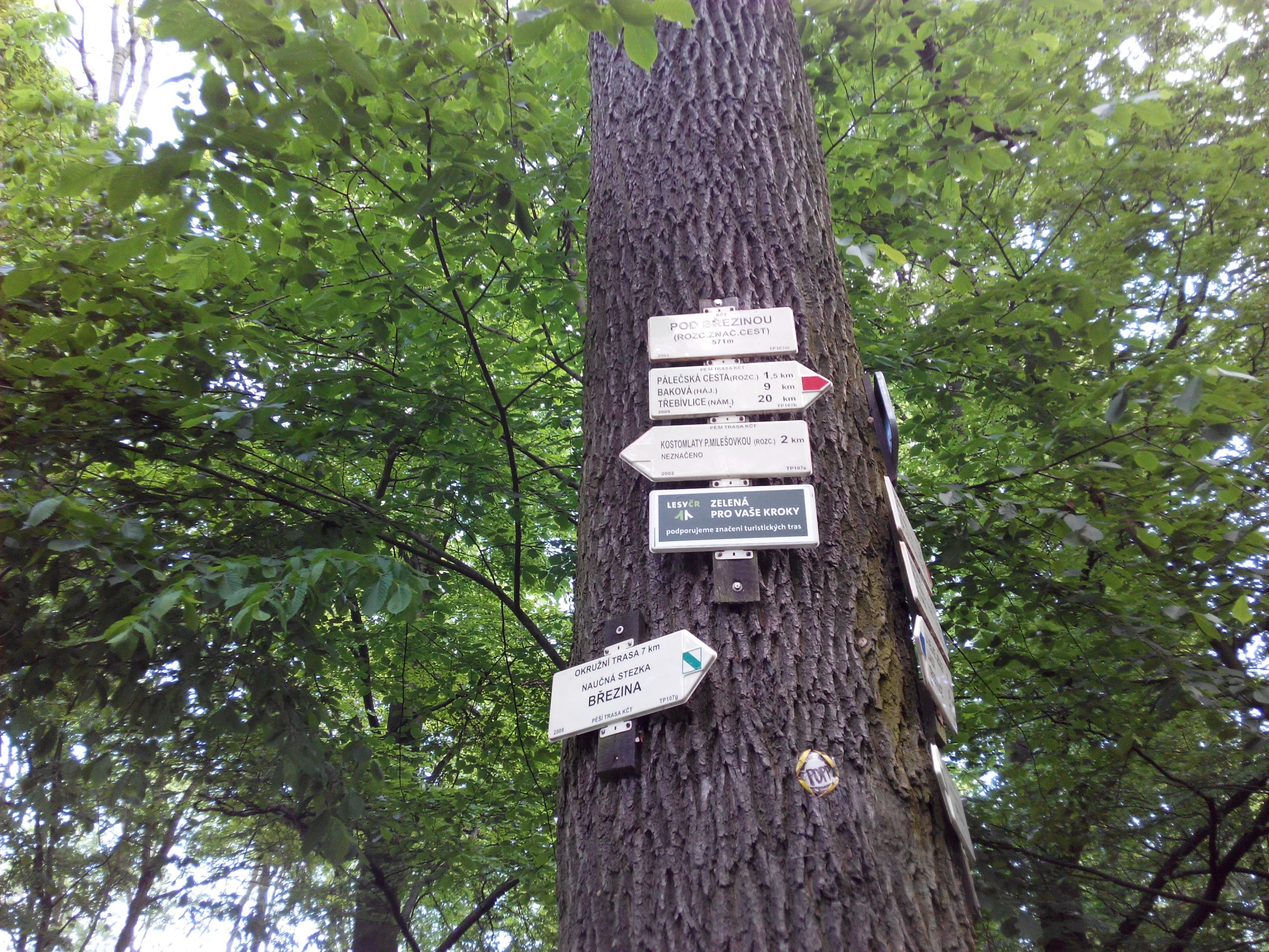 Začátek naší procházky nás zastihl na silnici spojující Kostomlaty pod Milešovkou s Milešovem u rozcestníku "Pod Březinou",kde je možnost odstavit auto.