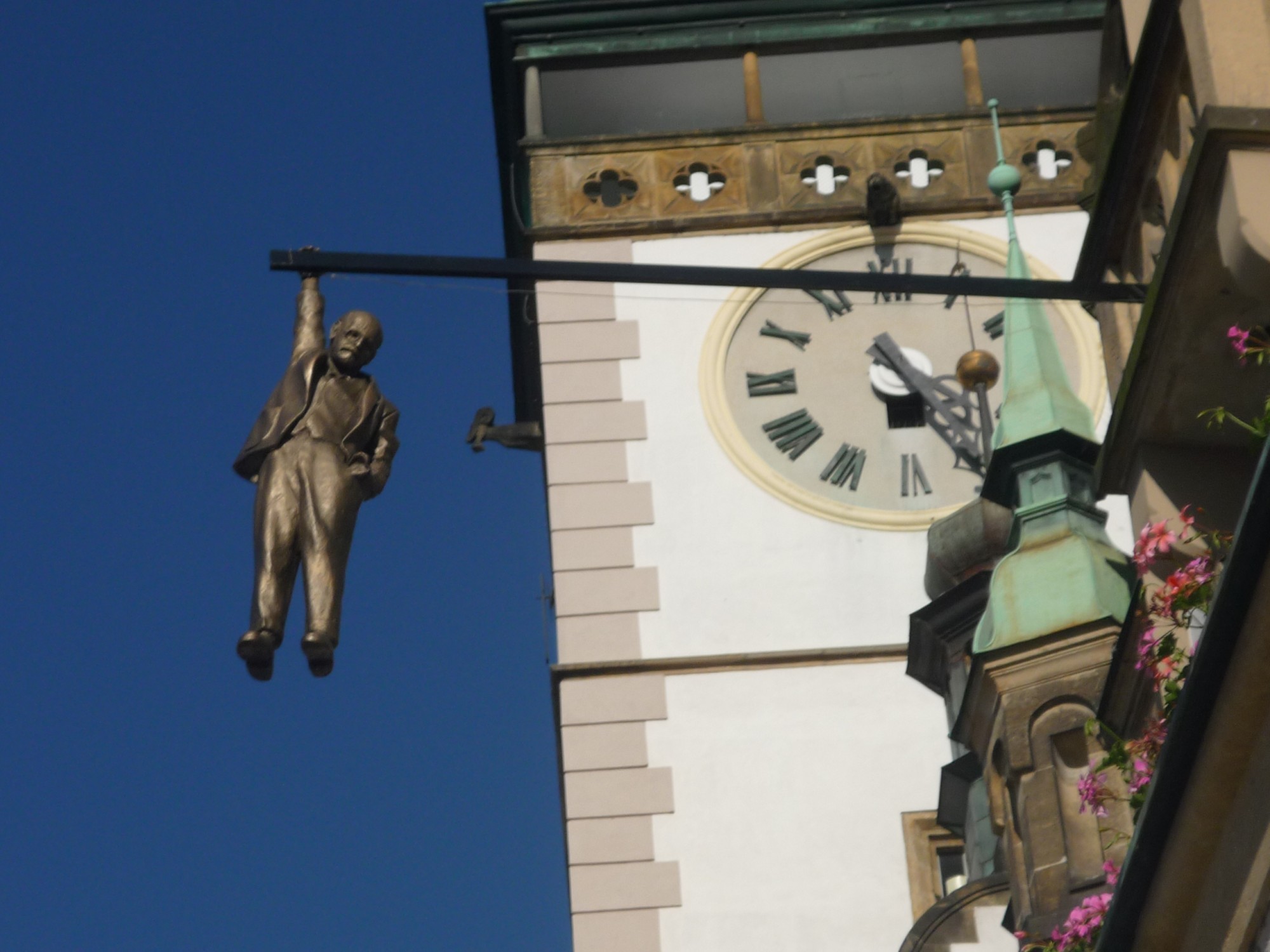 Vstup do Galerie Mona Lisa je zdarma a "oběšence" nebo "visícího člověka" na radnici můžete chodit sledovat v jakoukoliv denní či noční dobu.