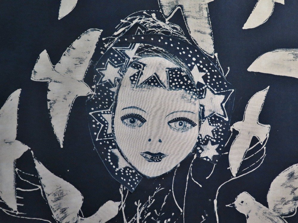 Na autorské výstavě Antonie Dostálkové pocházející ze Starého Města u Uherského Hradiště (vystudovala výtvarnou výchovu na Pedagogické fakultě UP v Olomouci a loutkářství na DAMU v Praze) má velkou zásluhu také dílna Jochových ze Strážnice, což je jedna z pouhých dvou rodinných dílen na jižní Moravě, která se pyšní titulem Nositelé tradice lidových řemesel. Modrotisk je dnes asi i dobrým obchodním artiklem, protože se tato tradiční technologie barvení plátna, jejíž historie sahá až do Číny 2. tisíciletí př.n.l., v současnosti dostává opět do módy.