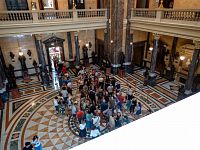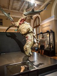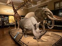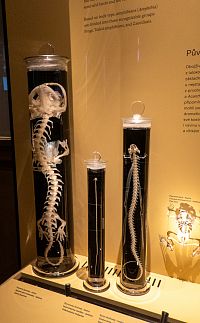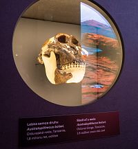 Dnešní muzeum je něco docela jiného, jak víme, nedávno celá historická budova prošla rozsáhlou rekonstrukcí, což se dotýká i sbírek a exponátů. Nějaké ty vycpaniny v muzeu sice vždy bývaly, přibyly ale i nové modely prastarých tvorů, a samozřejmě multimédia. Nemá cenu se příliš rozepisovat, o muzeu je mnoho pramenů i jinde. Než jsem se dostali k největší „atrakci“, tedy avizované Lucy, vylezli jsme i k vrcholové kopuli muzea s výhledem na celou Prahu, po té jsme objevili, na kterém že to ochozu je samostatná výstavbu vzácných artefaktů. Nevím, jakou náhodou, ale ve frontě, která se táhla již tou dobou od přízemí, se objevila mezera (kluci byli zabráni do četby mobilů), takže kolečko kolem Lucy a Selam jsme absolvovali bez čekání. Modely obou australopitéků i kostry je zakázáno fotit (ovšem ve sdělovacích prostředcích se jich objevilo víc než dost).