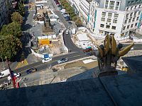 Vylézáme mezi muzejními budovami, kde vidíme, že centrum Prahy je opět rozkopané, magistrála nad Václavákem je redukovaná jen na dva pruhy, zbytek se připravuje na obnovu tramvajové trati, rozkopaná je i horní část bývalého Koňského trhu. Tedy na přítomnost spousty zájemců o výstavu koster australopitéků žádná sláva.