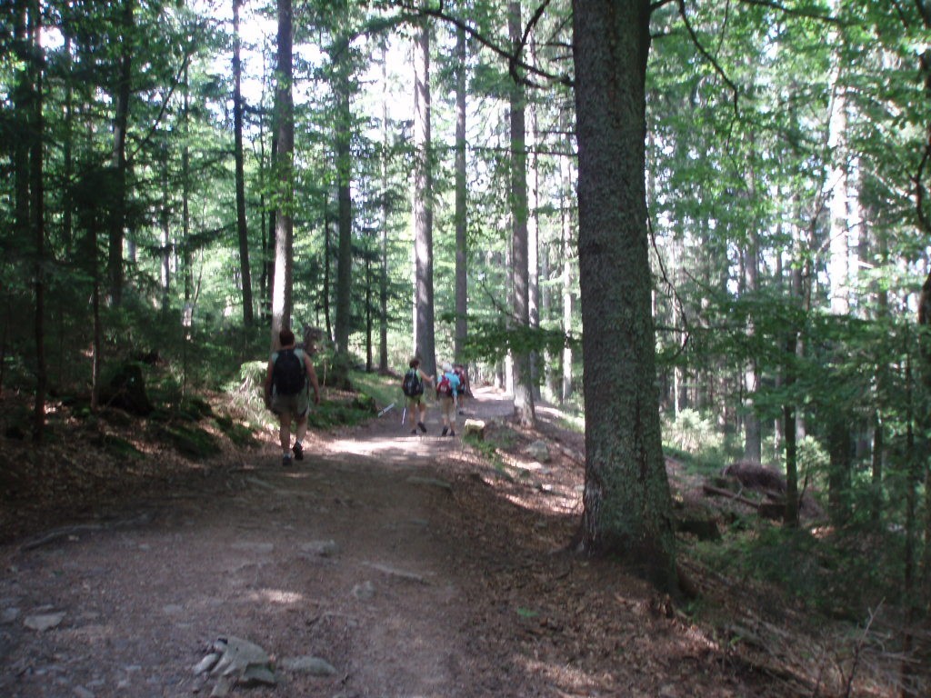 Z Prášil se vydáme po červené turistické značce, směrem na Prášilské jezero. Tam si můžete nechvíli sednout a pokochat se krásnou přírodou. Teď začne ta těžší část, musíte vystoupat po nevzhledné cestě až na Poledník. Není to žádný med, ale když budete udržovat stálé tempo, tak tam za chvíli jste. Na poledníku je občerstvení, takže můžete poobědvat a zajít si na rozhlednu. Ale než se dostanete nahoru, tak musíte zdolat docela dost schodů a taky žebřík, ale stojí to za to. Je z ní krásný výhled do Česka i do Německa. Z Poledníku se potom vydáte po zelené turistické značce, která je otevřená jen od 1. 7. do 30. 9, asi kvůli nějakým kytkám. Tato cesta vede lesem a cesta není nějak extra zpevněná. Pak se napojíte na červenou turistickou značku, která vede kolem Prášilského potoka, na kterém jdou vidět krásné vodopády a v kdyby jste byli unavení, tak se můžete zchladit. Tato cesta vás dovede až do Prášil.