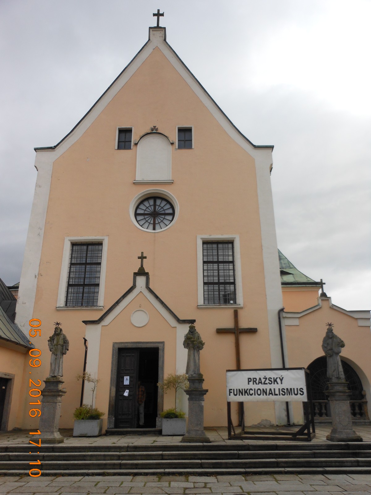 Autem do Klášterního kostela sv. Antonína Paduánského - koncertní a výstavní síň Sokolov, kde probíhá: Výstava Pražský funkcionalismus