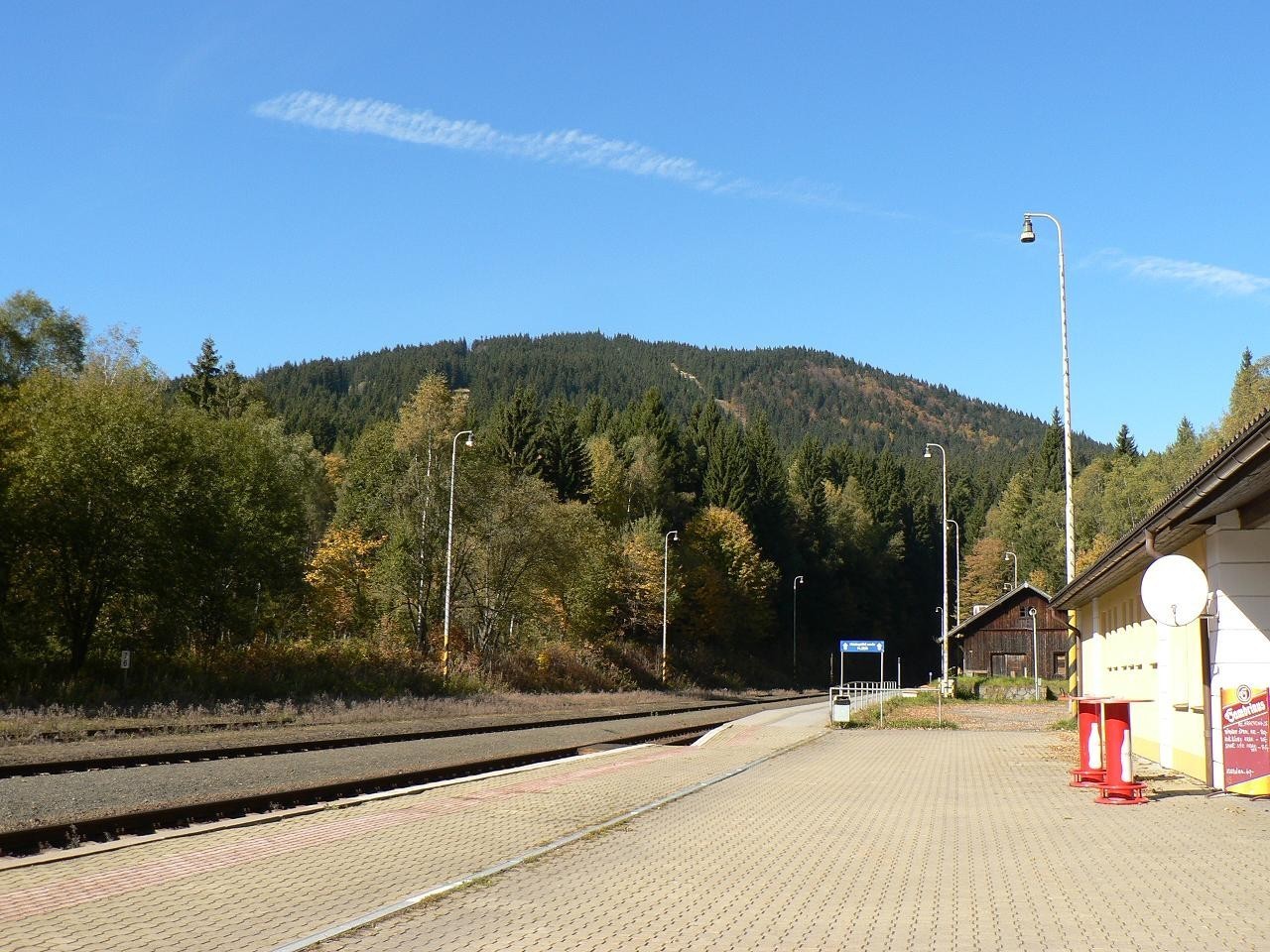 Malou svačinku jsme měli v batohu, ale v Železné Rudě je několik možností se najíst. Je nutné si dobře vybrat. To se nám dnes bohužel nepodařilo. Zašli jsme do hospody pod zastávkou Železná Rudy – centrum. Dvě zamračené číšnice se ploužily kolem a teprve dotazem, jestli obsluhují i česky mluvící hosty, jsme jednu přiměli k objednávce. Sice to s ní moc nepohnulo, ale po delší době jsme se piva a kávy dočkali. Na víc jsme si již netroufali.