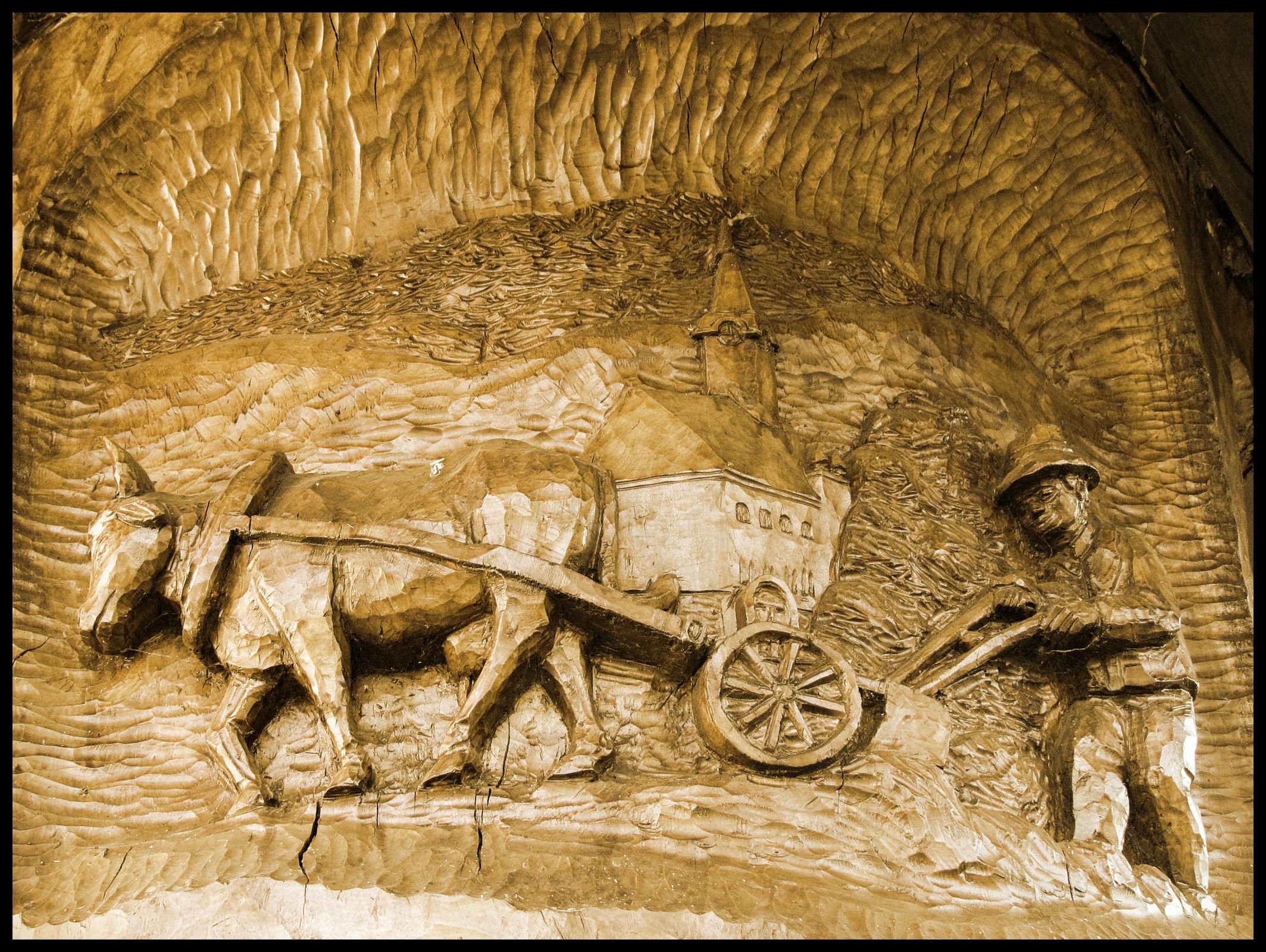 Po prohlídce parku přecházíme přes Rokytenku k pomníku Padlým I. a II. světové války a pomníku "tatíčka" Masaryka. Tady využíváme otevřeného řeznictví k zakoupení chutné svačiny a pečiva a jen o pár metrů dál přicházíme před budovu Obecního úřadu. Je docela hezká, ale naprosto jedinečný je dřevěný sloup před ní, který je naprosto originální "sochařskou minigalerií" : na sloupu můžeme vidět celkem 17 překrásných reliéfů ze života valašského lidu a před nepřízní počasí jsou chráněny na vrcholu sloupu umístěným typickým valašským klobúkem. Zajímavá je historie tohoto díla: když se v Liptále v obci rozšiřovala silnice, musely při tom být pokáceny také některé stoleté jasany a lípy. Starosta Vaculík tehdy jeden strom nenechal odvézt na pilu, ale oslovil uměleckého řezbáře Zdeňka Matyáše z Valašských Klobouk. Díky němu se Liptál může od roku 2008 chlubit unikátní "sochou," která jistě o hodně zvýšila turistickou atraktivitu této obce! Po pečlivé prohlídce jednotlivých motivů na sloupu, dnes nazývaným "Stromem života", se loučíme s centrem Liptálu a dál pokračujeme v prohlídce dědiny po zelené turistické značce proti toku Rokytenky.
