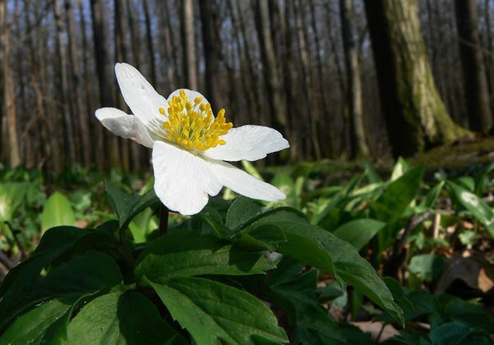 Za tratí už ale asi po 300metrech změníme směr Doprava a držíme se uježděné převážně hliněné lesní cesty. Po levé ruce se nám objeví strouha a zdánlivě nedotčená rostlinná scenérie zátopového území řeky Odry. Když budeme mít štěstí a ta zůstane na jaře jen ve svém korytě, dostane se nám nádherného pohledu na statisíce sněženek a sasanek hajních, rostoucích za strouhou. Tvoří nádherný bílý koberec na zeleném podkladu, všude klid, jen zpěv ptáků - no relax na pohledání. Po chvíli se objeví po pravé straně rybník Podhorník s vodním ptactvem a málem nebudeme vědět, na kterou stranu se dříve dívat. Za rybníkem už kytiček pomalu ubývá, až přestanou být vidět úplně, proto od něj moc nespěchejte.