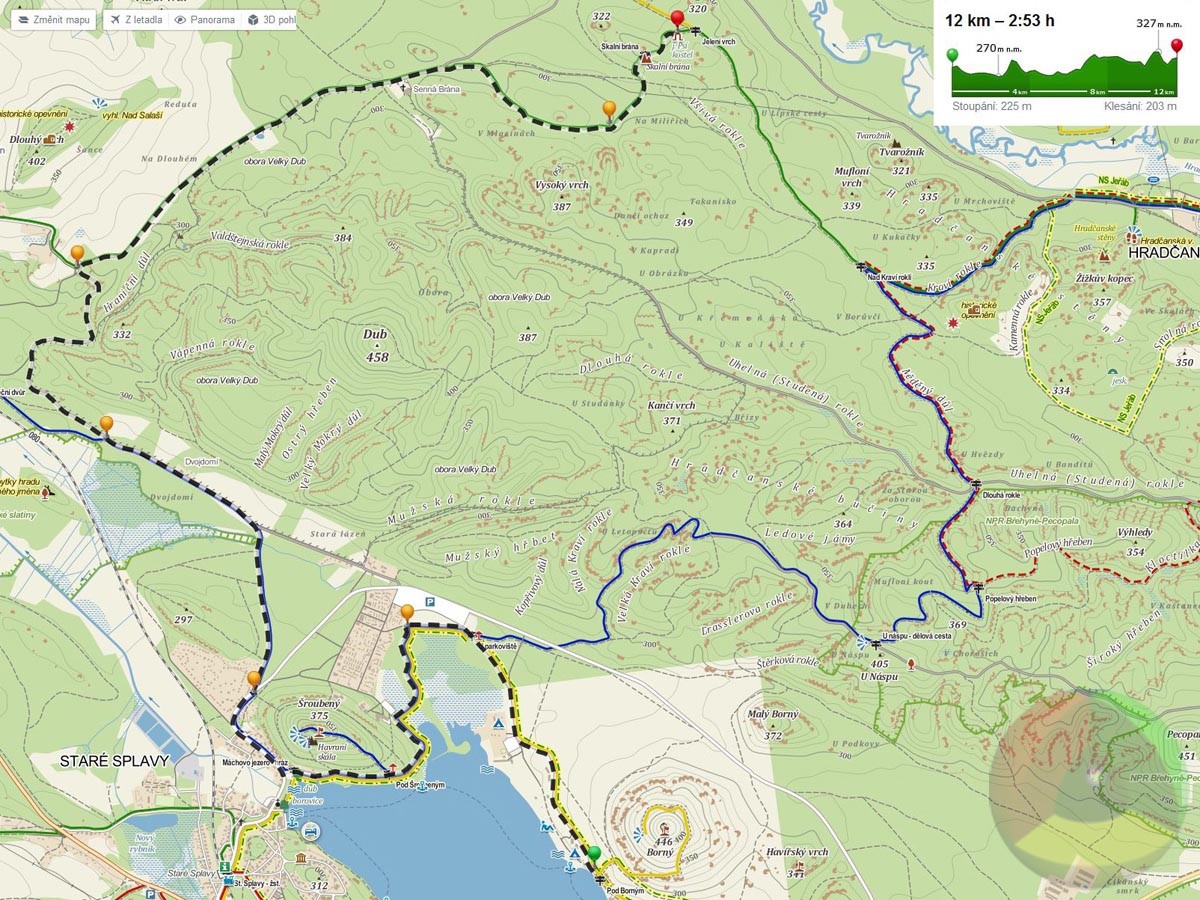 Pro nás byl výchozím bodem autokemp Borný. Více o trase na mapce ve fotogalerii.