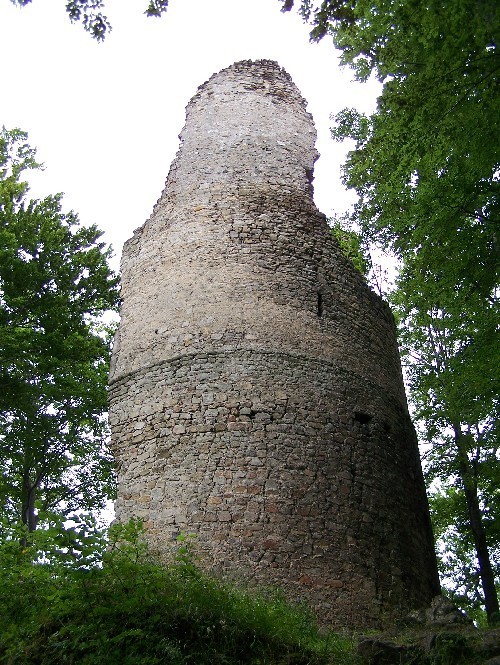 Po červené značce se můžete dostat na další hrad loupeživých rytířů Kaltenštejn, trasa má asi 4 km, cestou je možné se vykoupat ve skvělém lomu asi 1,5 km před hradem. My jsme volili raději stezku asi 3 km po zelené z Černé Vody. Z původního hradu se dochoval fragment věže a spousta zdí. První zmínky o hradu pocházejí asi z roku 1250, v období po husitských válkách se ho zmocnil dobrodruh Zikmund Rachna, který unesl dceru stoupence protihusitské strany Půty z Častolovic. Po jeho pronásledování hrad nakonec dobyl biskup, Zikmund byl umučen, provizorně opravený hrad byl po roce 1505 pobořen a věž byla odstřelena, materiál byl později využit na přestavbu Zámku Jánského vrchu. Přesto má zřícenina své kouzlo...kdo má fantazii, dokáže si živě představit například vstupní bránu mezi zbytky zdí a také třeba celu vězněné paní ve věži. Turistickou známku č. 1052 můžete zakoupit v hotelu Černá Voda, v restauraci U kaštánka nebo v penzionu Radost, vše po cestě.