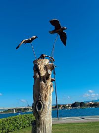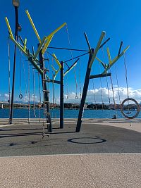 Do města Olbia jsem doletěla po poledni a pěšky se vydala do centra. Je to jen nějakých cca 6km. Šla jsem kolem Lídlu (pár minut od letiště), za půl hodiny jsem došla k moři a podél pobřeží jsem obcházela malý záliv. Prošla jsem malým parčíkem, procházkou po dlouhé promenádě (2km) jsem minula pomník, nápaditě vybavené dětské hřiště a 2 venkovní posilovny (z toho jedna pod velkým mostem) až jsem došla k archeologickému muzeu v jehož blízkosti se nachází zábavní centrum- velké ruské kolo, krásný historický kolotoč, stánky...Jen pár minut odsud je také přístav. Po dobré kávě jsem pokračovala do centra města, zastavila se u krásného kostela San Paolo, jehož stavba stojí v horní části historického centra (byla postavena na troskách pohanského chrámu z římské doby), dále u baziliky di San Simplicio a z tohoto místa už byl nadohled hezký velký park plný různých sportovišť (na fotbal, tenis...), dětských koutků, prolízaček mezi stromy a kameny, jsou zde i jezírka...Velmi příjemné místo na nejrůznější aktivity i odpočinek. Po procházce parkem jsem pomalu směřovala k apartmánu, kde jsem byla na 1 noc ubytovaná přes booking.