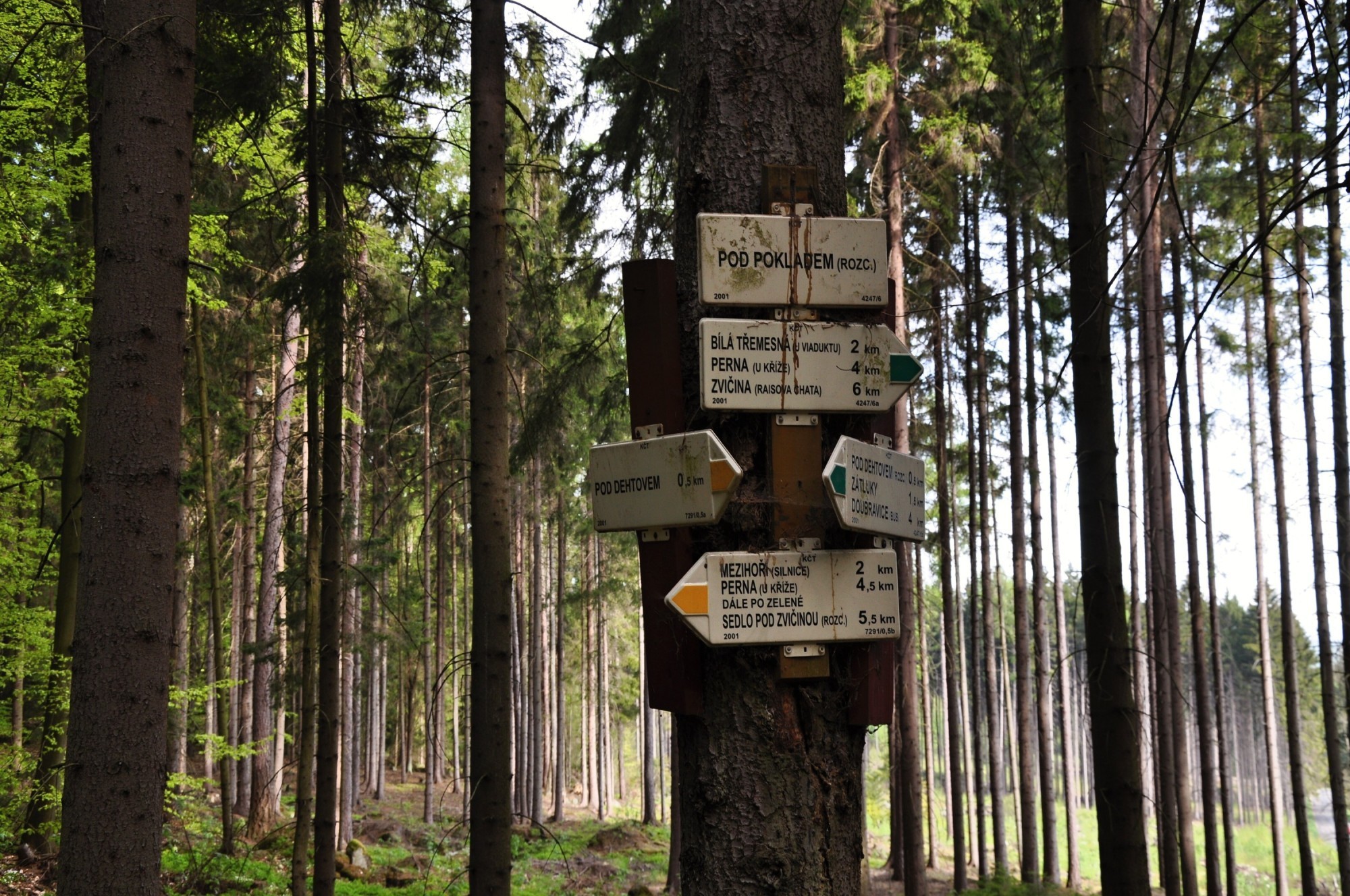 Naše procházková trasa začíná zeleným turistickým značením,na rozcestí, které se nám první v lese ukazuje pokračujeme po žlutém turistickém značení .Po té dojdeme na rozcestí Perná U kříže.Tam se chytáme opět na zelenou ,směr Bílá Třemešná.Záleží na výchozím bodu ,ale naše kolečko dělalo cca 10 km.